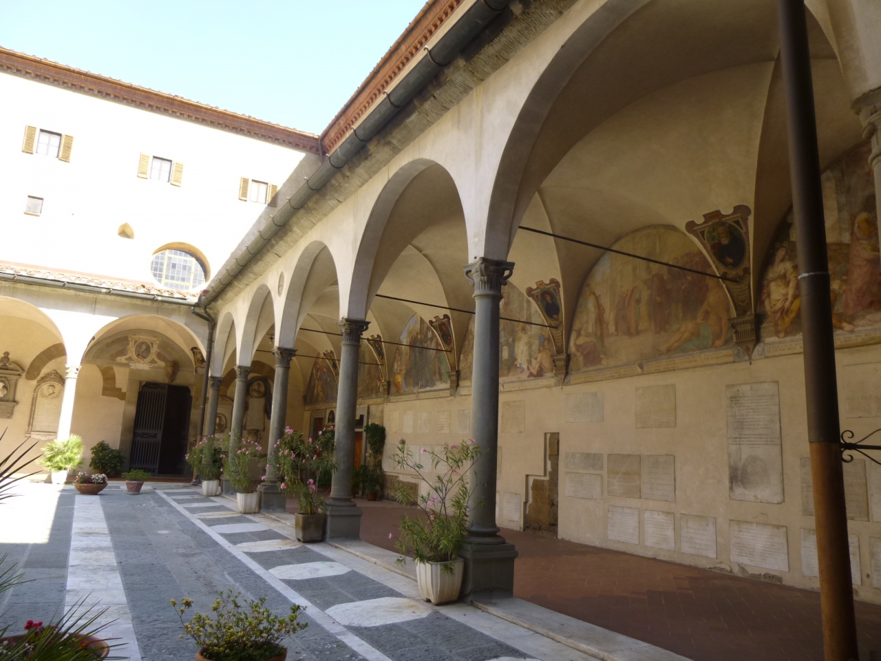 15世紀、メディチ家のお抱え建築家ミケロッツォによって再建された、フィレンツェ一美しいといわれる同名の広場に立つ教会です。