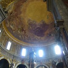 ガラス張りの天井、壁のフレスコ画が美しい柱廊を通って、一歩中に入ると、豪華絢爛なバロックの内装に驚きました。
