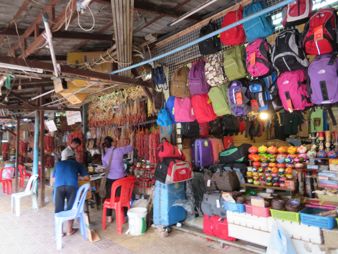 シェムリアップ市街の中心、シェムリアップ川沿いにあります、地元の人が利用する生鮮食料品から観光客が買う民芸品まで多種類の商品が販売されています、飲食ができるお店もありかなり安いようです、お菓子やお土産を買う時は必ず負けさせて買うことです、言い値の半分位から交渉すると良いかも、気に入ったものを安く買えるとうれしいです、今回は帽子を買いました。