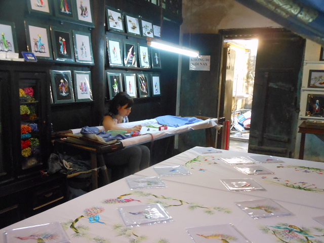 内部では、刺繍の実演をしていたり、美術品の展示・販売も行われていました。