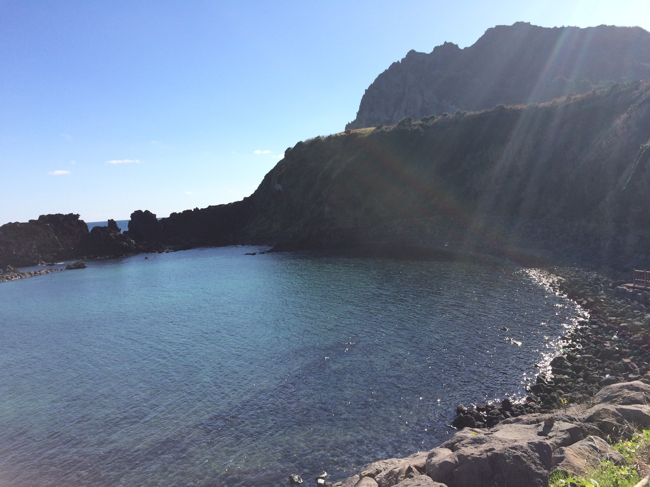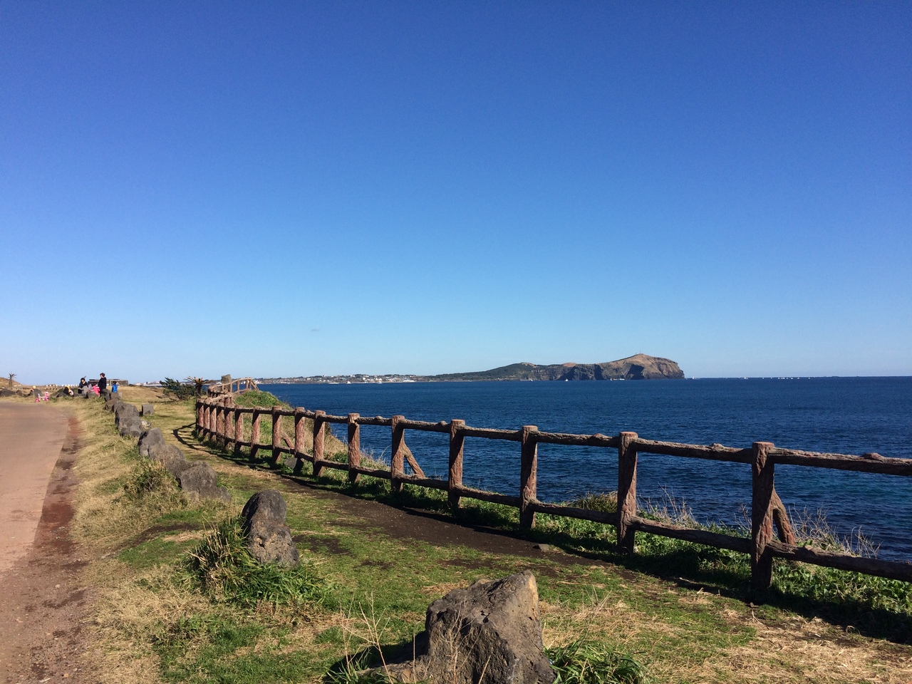 もちろん、真正面から登るのも良いですが、左側に歩いて行くと、海を見て右に日出峰、左に牛島が見えるスポットがあります。