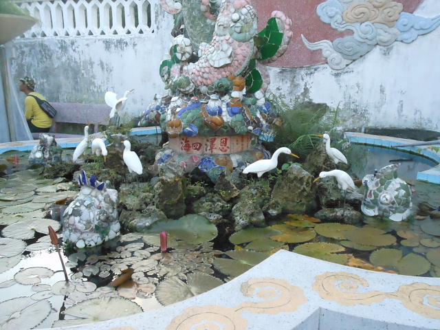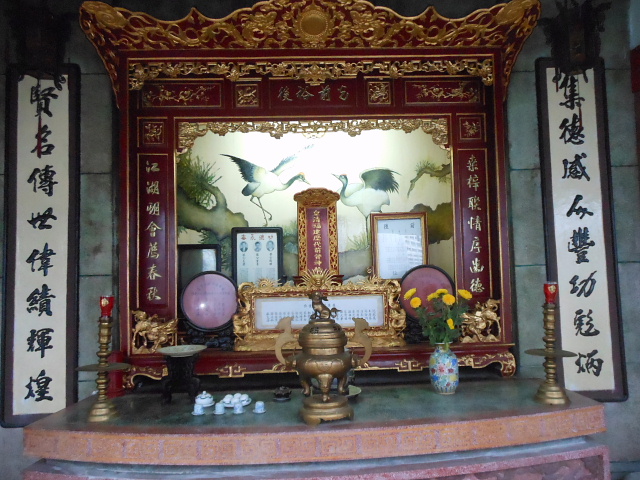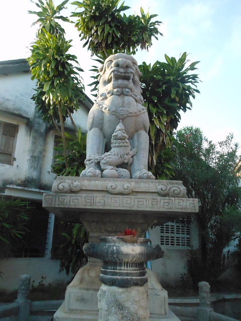 私は初めて訪れましたが、色鮮やかな建物が特徴で、内部には祭壇が設けられていました。三国志に登場してきそうな豪傑風の彫刻や、白鷺の像を配置した庭園などが気に入りました。また、日本の神社などで見かける狛犬のような獅子の石像もありましたが、狛犬のルーツは中国だったのかな? アオザイを着た女性も見かけました。
