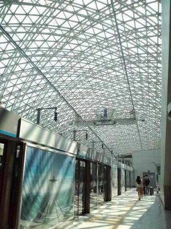 AREXが停まるホームは、天井に鳥の巣のような格子が走っていて、地下なのに光の降り注ぐ現代的なデザインが印象的です。改札口から空港ターミナルのメインロビーまでは歩いて5分ちょっとといったところですが、時間に余裕があるならここは急がず、空港駅のモダンアート風の吹き抜けにしばらく目を向けるのもよろしいんじゃないでしょうか。