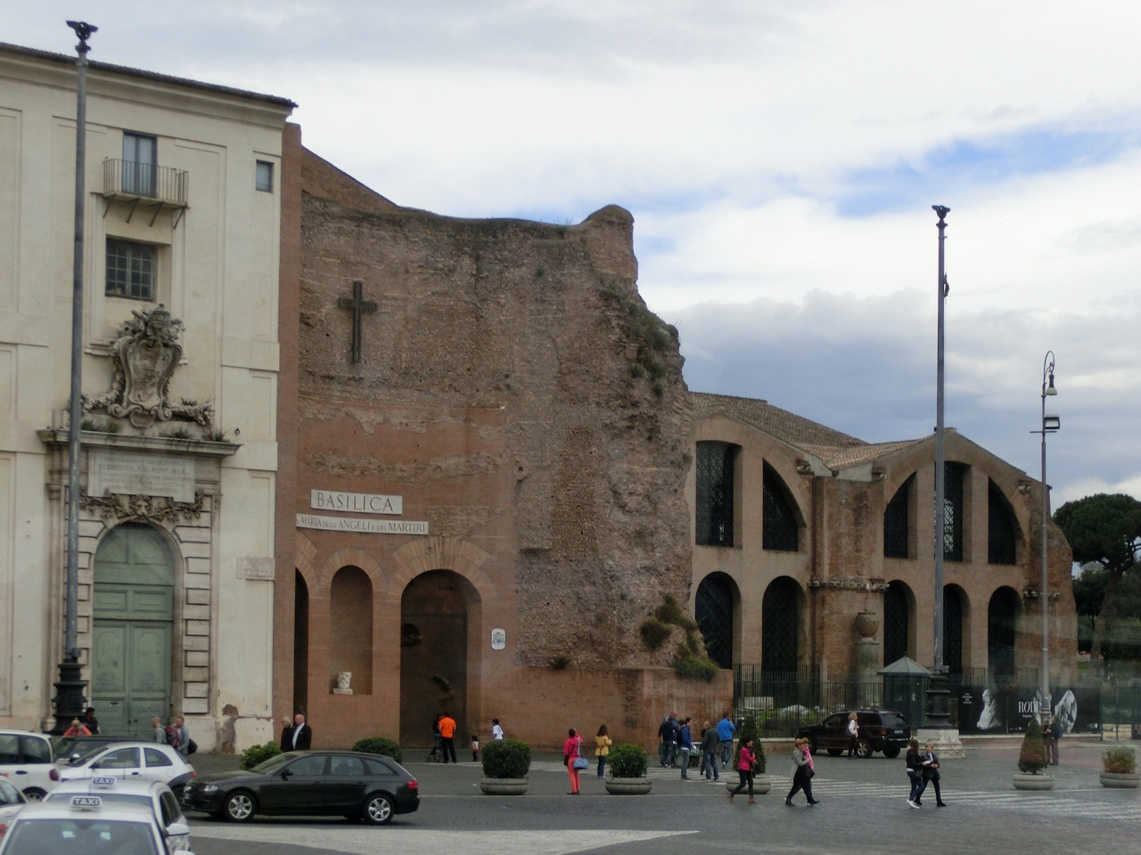 外観はローマ帝国時代のディオクレティアヌス帝の浴場跡を利用したものだと知ってからは今度は入口が男湯・女湯の出入り口にしか見えなくなってしまいました。