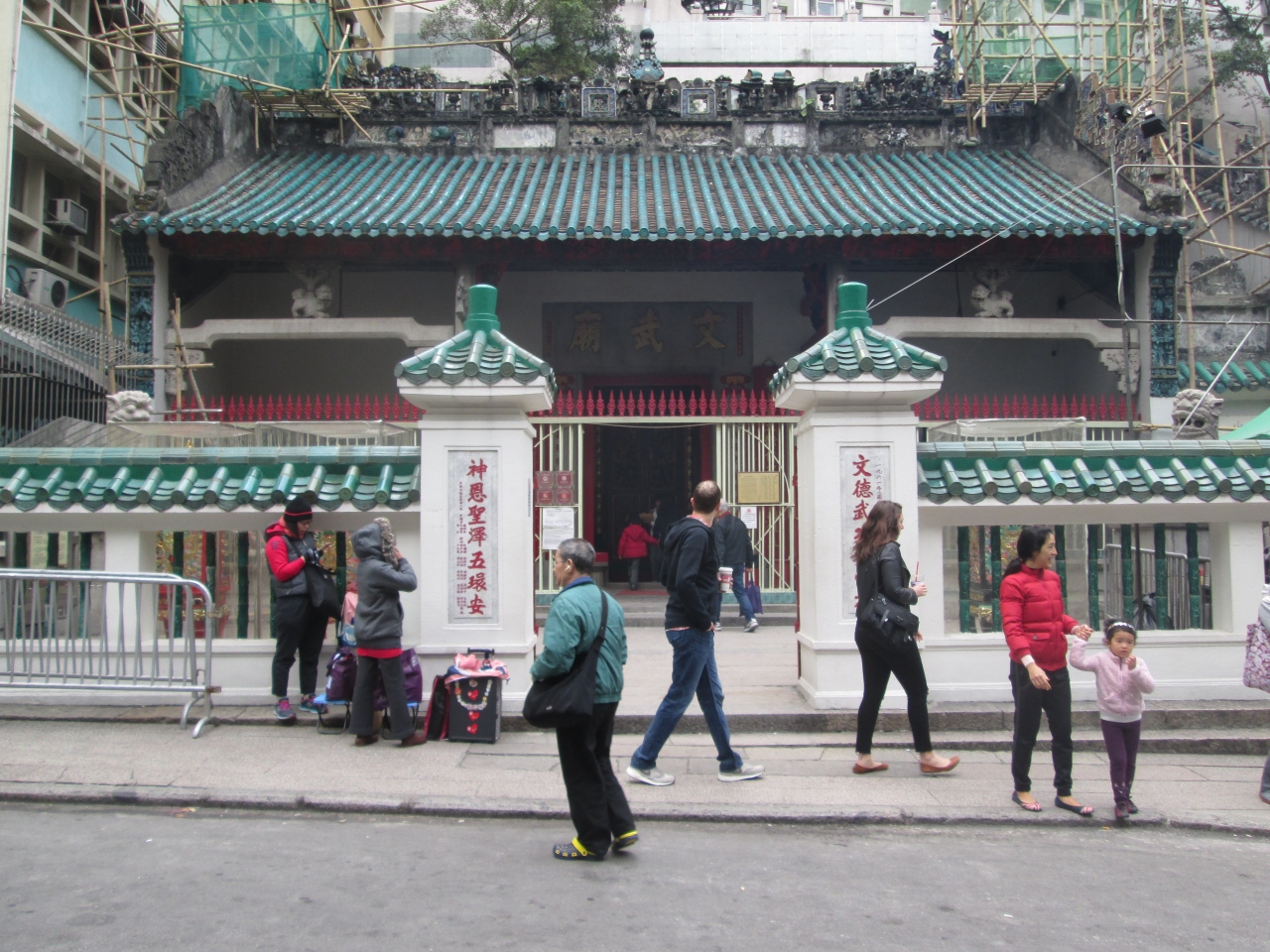 香港観光の定番です。香港島にある学問の神・文昌帝、三国志の英雄・関羽が祭られている寺院です。注意していないと通り過ぎてしまうぐらいで、想像していたより境内は狭かったですが、御利益があるようで観光客だけでなく朝から地元の方と思われる方が参拝されてました。