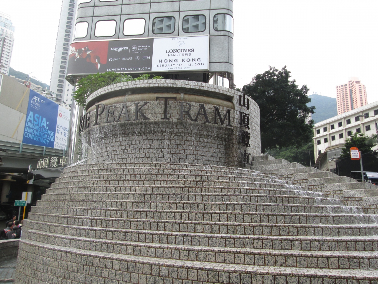 香港観光の定番、ビクトリアピークへアクセスする特別なトラムです。海抜373mの展望台までは直通バスやタクシーで行く方法もありますが、この特別なピークトラムがもっともポピュラーな交通手段で、山の麓からピークまでの全長1.4kmを急勾配で駆け上がる便利な乗り物でした。