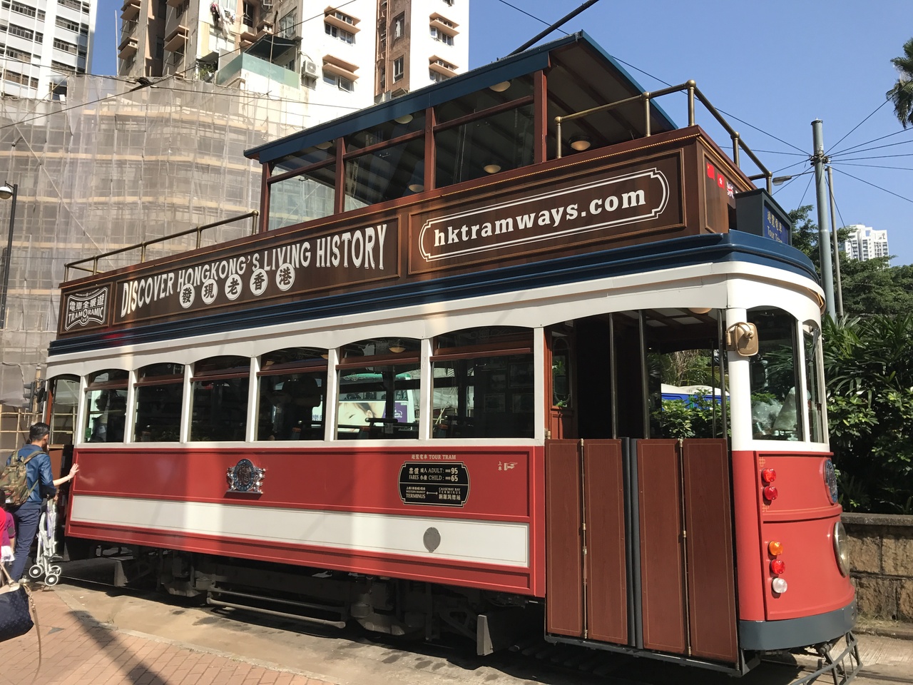 普通のトラムに乗って、二階席からゆっくり香港島の街並みを眺めよう、と思いましたが、時間によっては座れないで立つこともある、とのクチコミを見て申し込みました。ネットで予約、決済し、当日バウチャー持参するだけで簡単です。