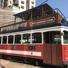 上環の乗り場で待っていると、時間ギリギリにレトロなオープントップトラムがやってきます。