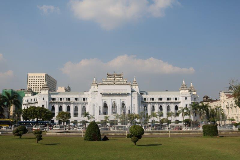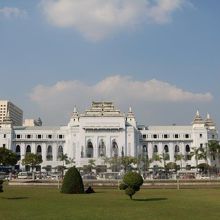 白亜の美しいコロニアル建築です。戦後の荒廃期のような雑多としたダウンタウンの街中にあるので、逆に違和感を覚えるほどです。マハバンドゥーラ公園の正面にあるので、公園の芝生の緑、白い外壁、青い空と綺麗な写真を撮ることができました。