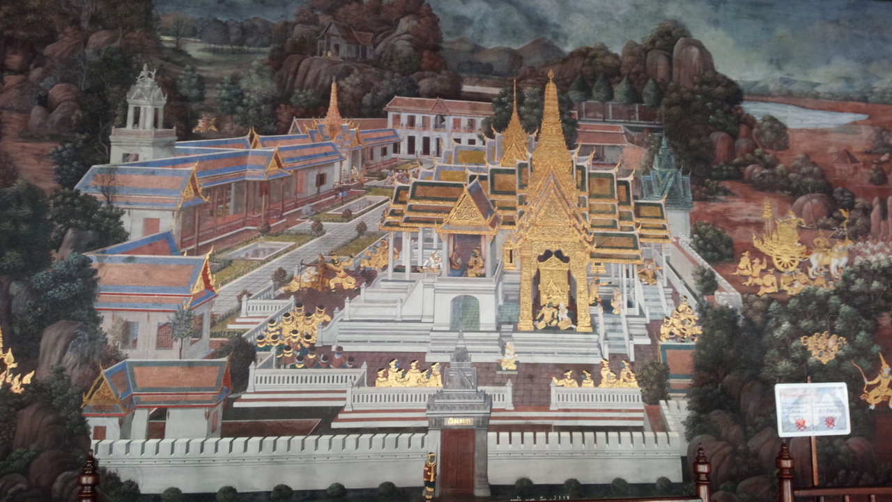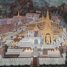 タイでも一番豪華な寺院だと思います。11月初旬だったので国王の崩御にともなってやっていないかと思いましたがホテルで聞くとやっているという事で行き、みる事ができました。金ピカの中にタイルなどで絢爛豪華な装飾がされていてます。奥の方まで行くと絵巻物の様な壁画もありじっくり見ると結構時間がかかりそうです。