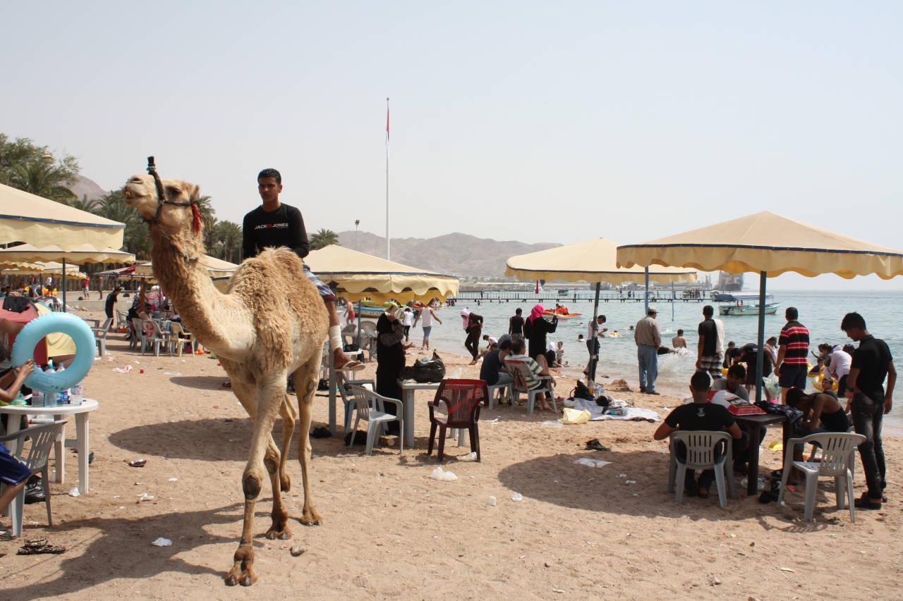 公共ビーチで少し泳ぎました。海や砂浜自体はあまり綺麗ではありません。観光客はほとんどおらず地元の人たちが中心です。アバヤを着たまま海に入る姿が新鮮でした。ビーチにらくだがいたのがヨルダンっぽかったです。