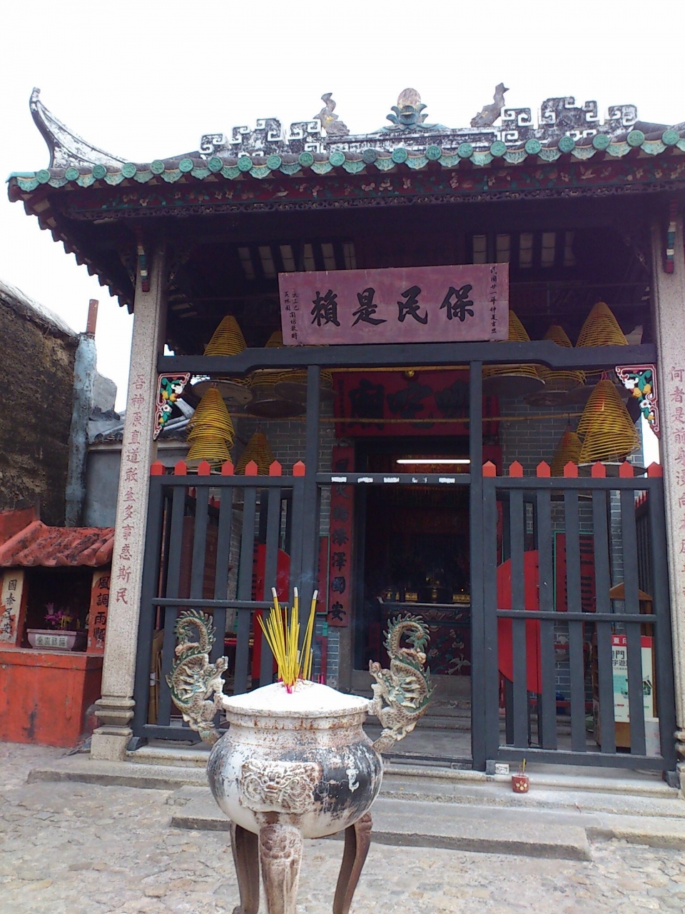 マカオの1番の観光名所の聖ポール天主堂の向かって左裏にある中国風の祠です。聖ポール天主堂は、正面の一枚壁しか残って居ないとの事だったので、裏側から見てみようと回ってみたら、この中国風の祠がありました。武道と疫病退治の神であるナーチャを祀っています。ナーチャは孫悟空の西遊記にも出てくる子供の神様だそうです。西洋の教会と東洋の祠が近くで同居している不思議な場所でした。