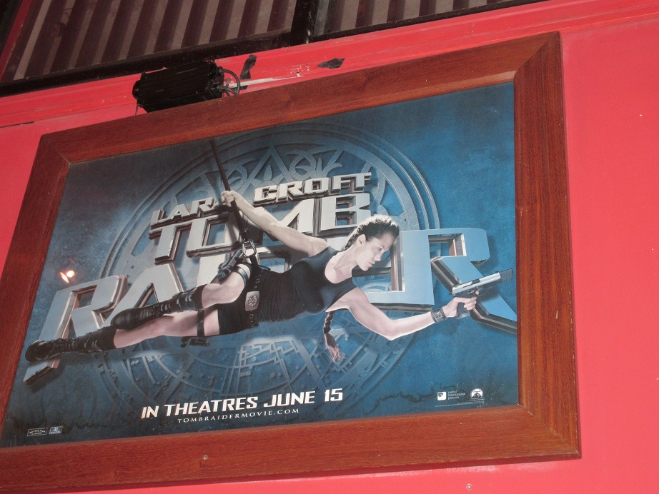 映画のポスターも貼ってあり、取り敢えずお約束のカクテル、トゥームレイダーを1杯だけ注文しました。味は普通、飲みやすかった。