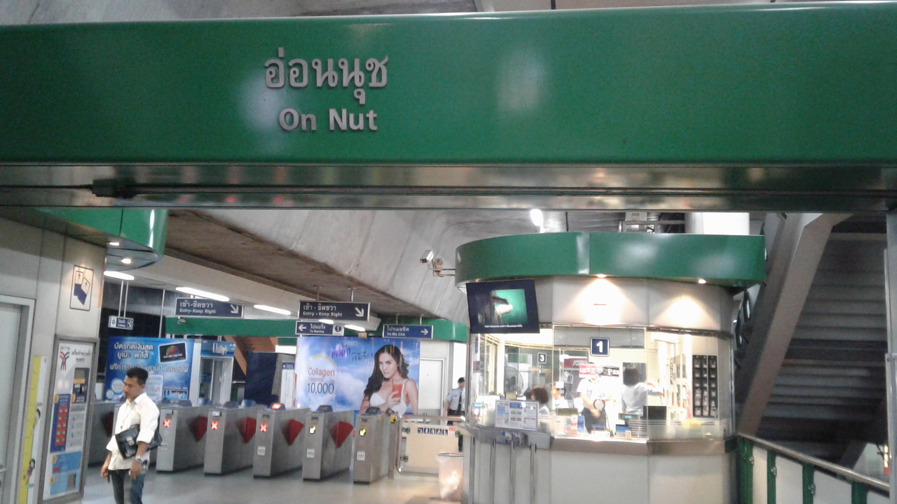 BTSスクンビットラインは、このオンヌット駅からがらっと雰囲気が変わります。エカマエ駅までは外国人居住区、プラカノン駅も再開発され外国人の利用が多いですが、川を渡ったオンヌット駅からは急にローカルな雰囲気が漂います。駅はロータス直結で、お土産を買ったり、フードコートで食事できたりします。また、1階のマクドナルドは24時間営業で、何か購入すれば40分間無料WiFiが使えます。スワンナプーム空港に行く高速道路の出入り口もあるので、意外と利用価値のある駅です。