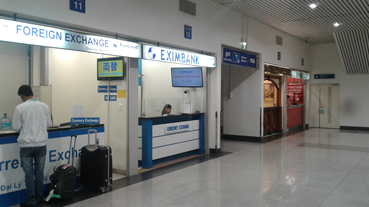 ベトナムのタンソンニャット国際空港に着いたら、先ずすることはベトナムドンへの両替だと思います。受諾手荷物を受け取り、到着ロビーを出る前に10軒ほど両替所があります。これはハノイの空港も同じですが、ベトナムの空港での両替は必ず全ての両替所のレートを比較して下さい。全てのレートが均一のバンコクの空港敷地内の両替所と違い、結構レートが異なります。