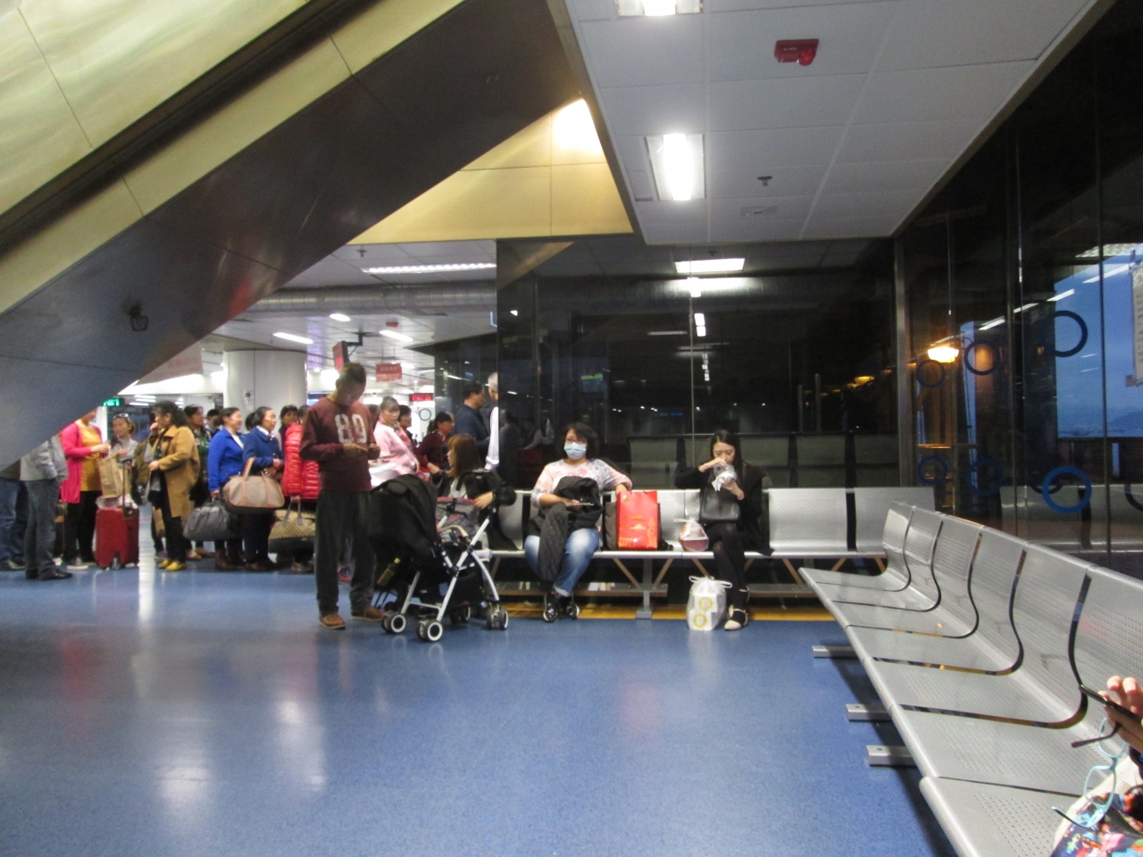 マカオ方面行きのターボジェットを利用しました。場所柄、中国系の利用客が多いですが、香港の出国審査場ではビジターのレーンに仲良く並びます。11月は運が悪く、団体客と出発便が重なったぶため、珍しく出国審査で時間がかかってしまいました。所要時間が読めないので、チケットを購入後、すぐに審査場に行き、ゲート付近で待つ方が良さそうです。