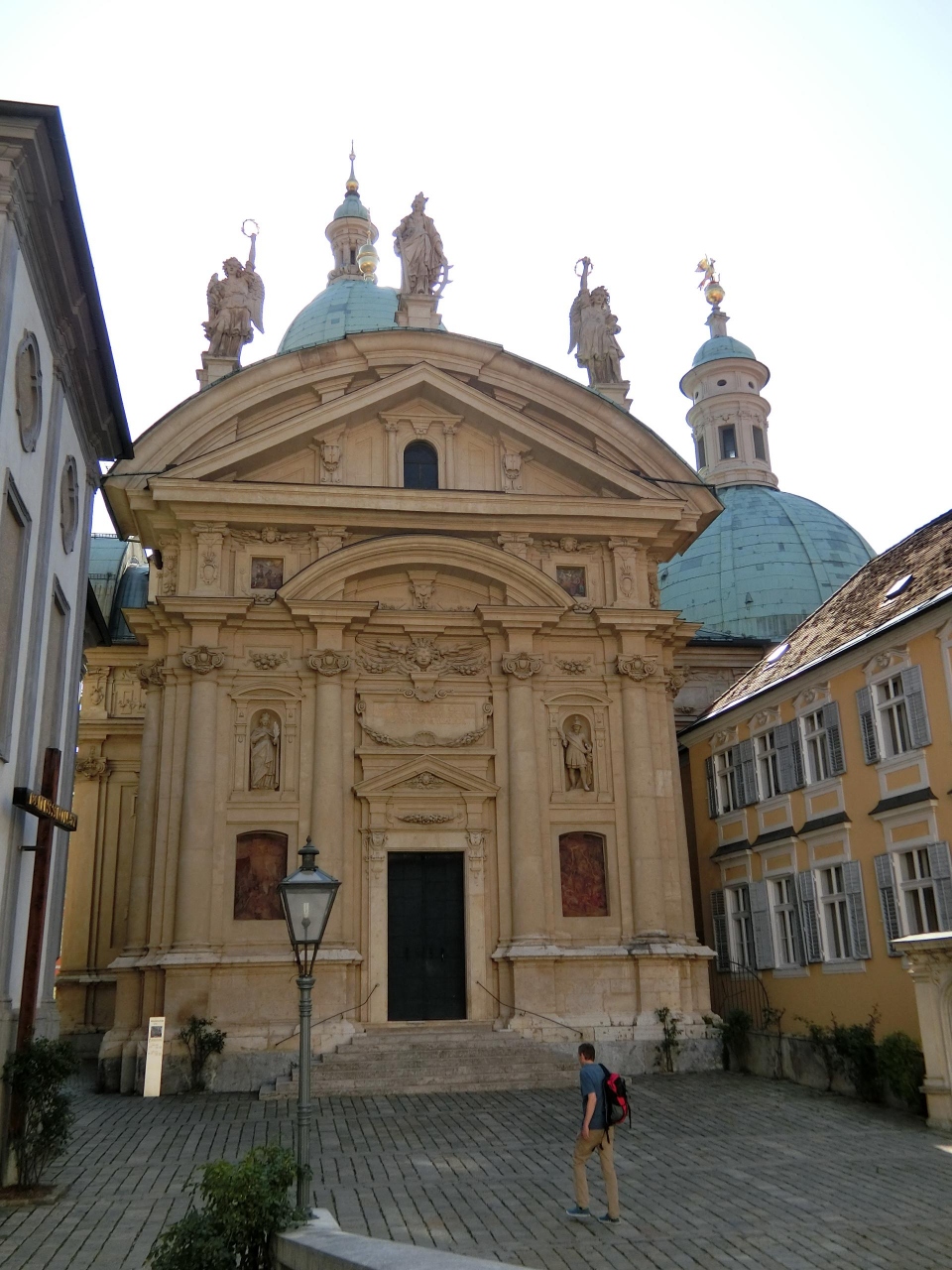 ドームの隣に建っているのが皇帝フェルディナント2世の霊廟マウソレウムです。こちらは開場が10時30分でしたので外観のみの観光でしたが、流石に皇帝の霊廟、建物は大きくファザードの彫刻やフレスコ画は立派な物でした。