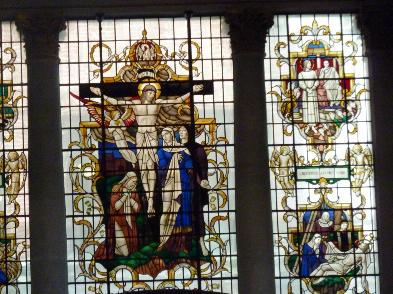 中に入ると正面祭壇後ろには見事なステンドグラスが配置され、質素ですが立派な造りの教会でした。中は静かでゆっくり見学できました。並んでいるベンチには何人か横になって休んでいる人もおり、夜でも解放されているようです。入場は無料ですが、募金箱が入口近くにあったので小銭を入れてきました。