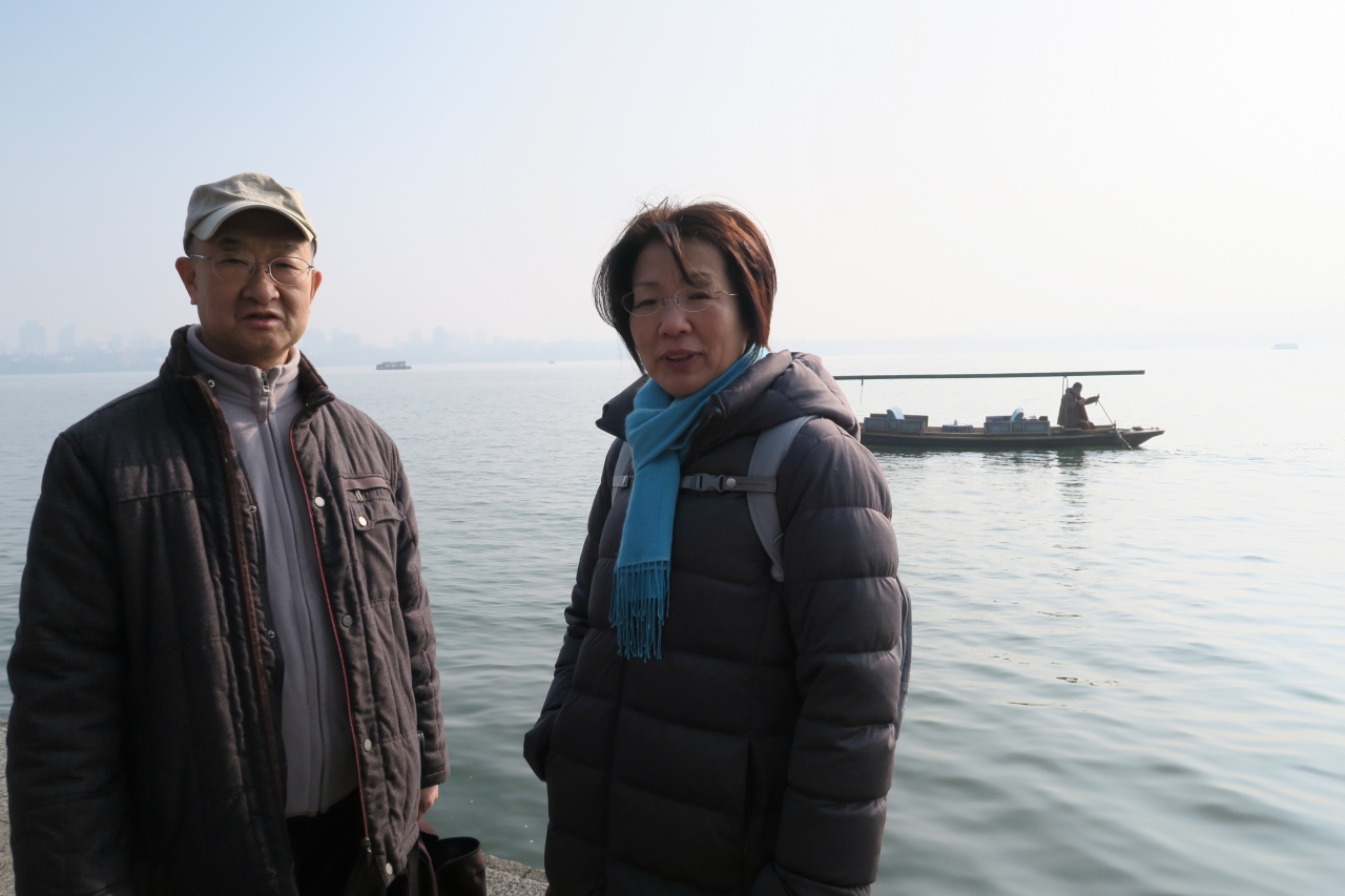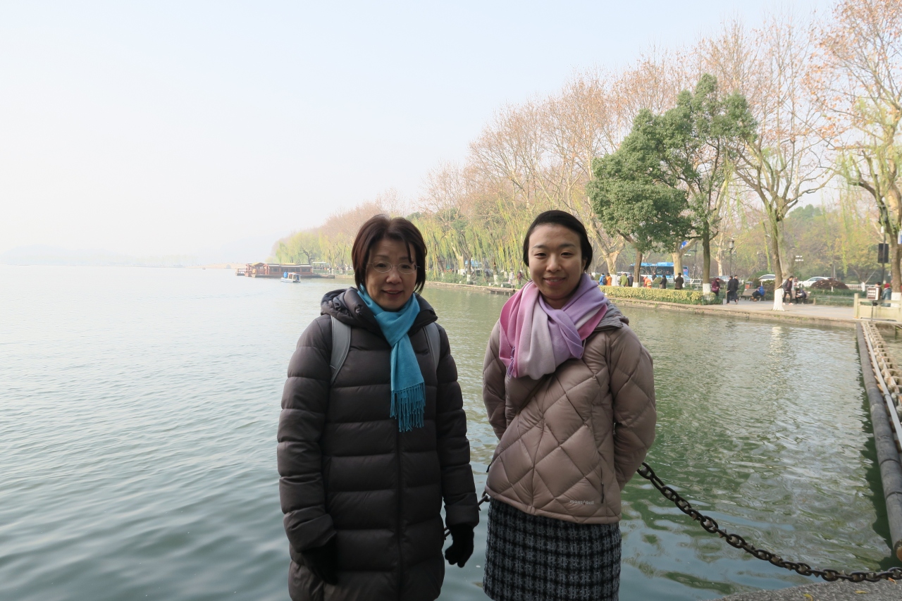 西湖十景の一つ。更に、時計と反対周りに歩いてゆく。結構な道のり。白堤を渡り切り、島の部分へたどり着く。湖面の向こうには、島が見え、対岸には、雷峰塔も望め、景色の良い所。丁度、昼時で「楼外楼」でランチを頂く。2階席からの景色が良い。歩き疲れた事もあり、レストランでゆっくりとした。9月開催のG20の会場としても利用されていた。