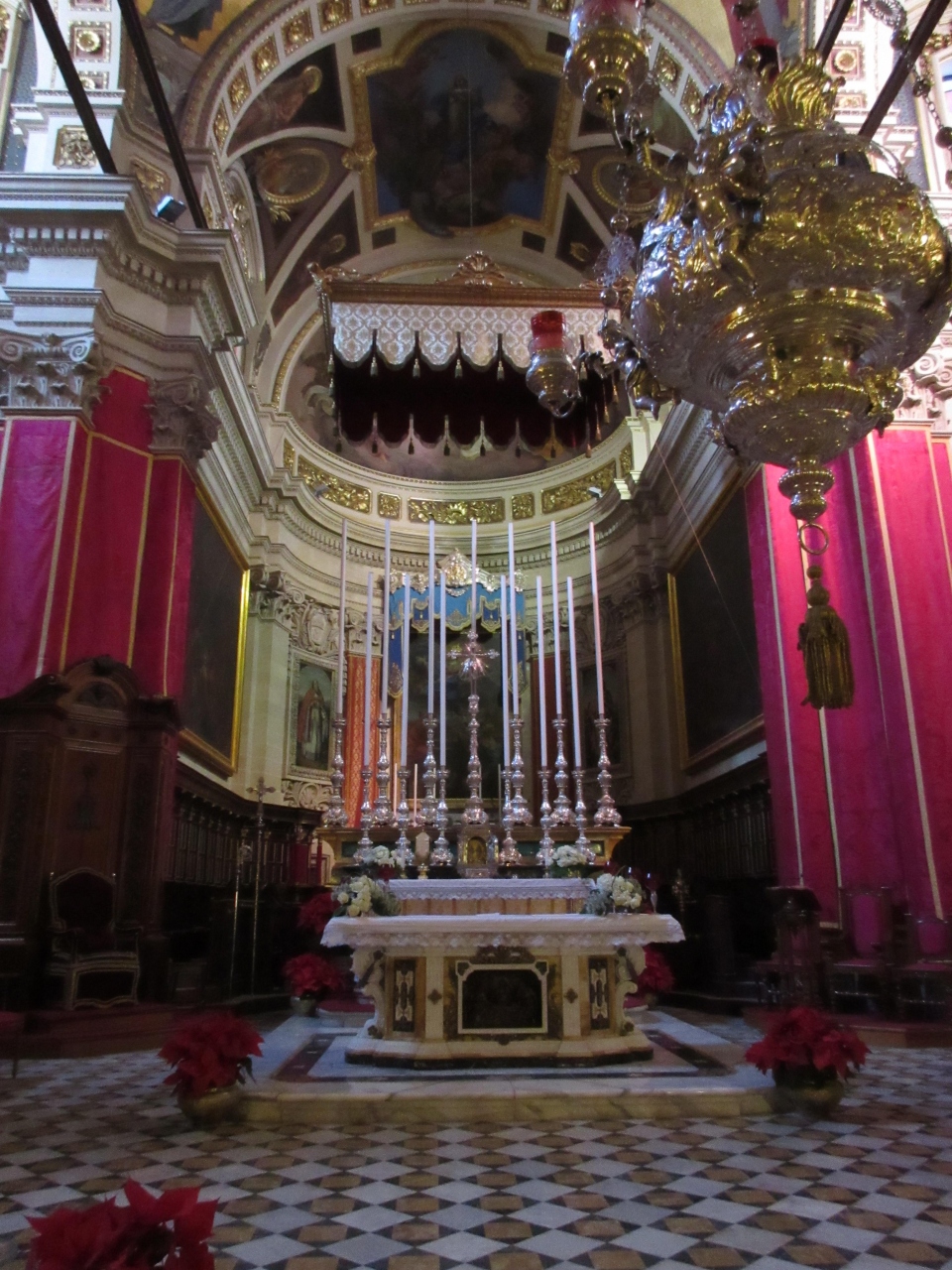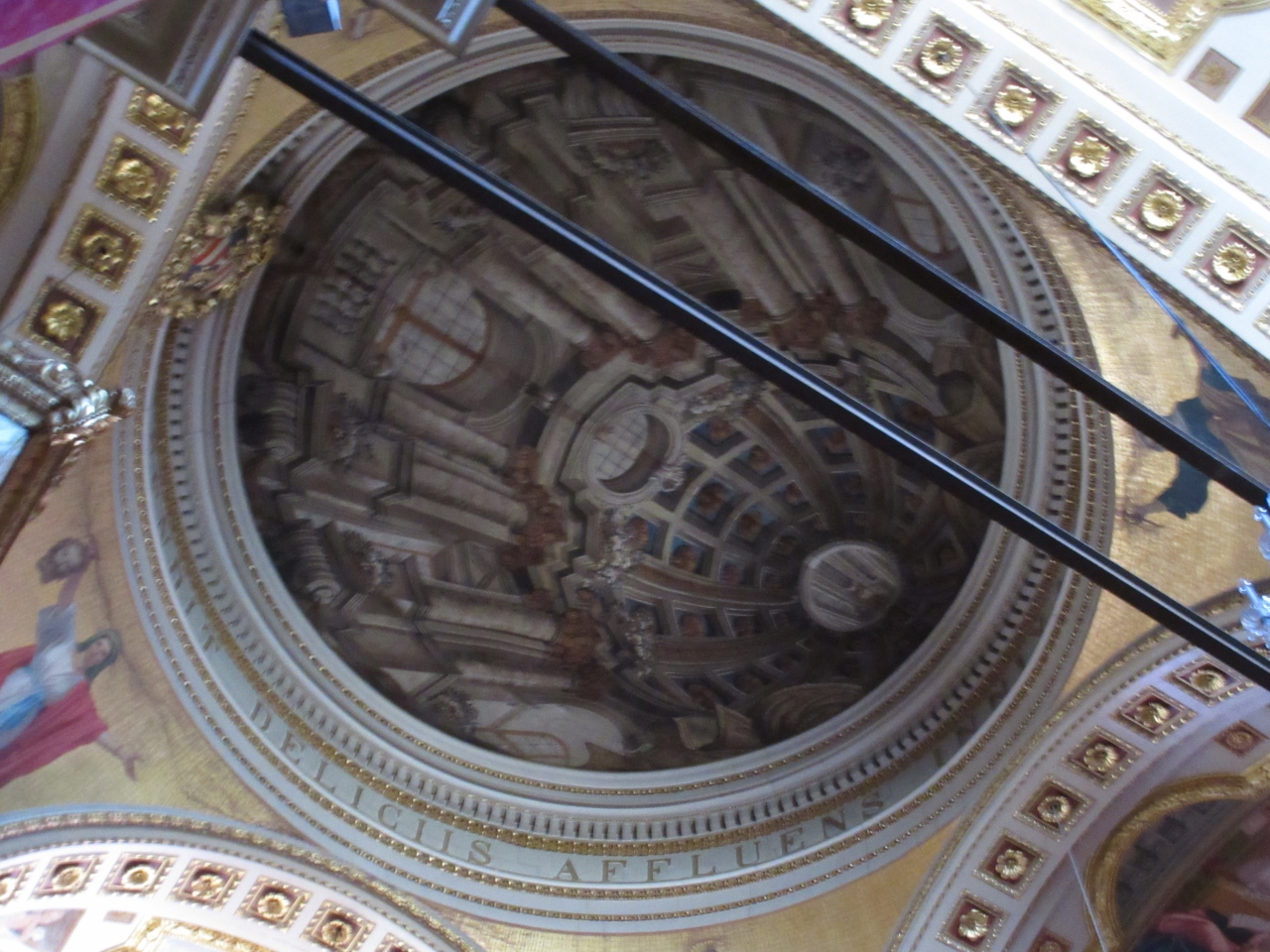 大城塞の中にある大聖堂。外観はシンプルであるが、中に入るとゴールドと赤の華やかな装飾がある。建築当初はドームを作る予定であったが資金不足になり、だまし絵をかくことになった。外から見ると確かに平らである。