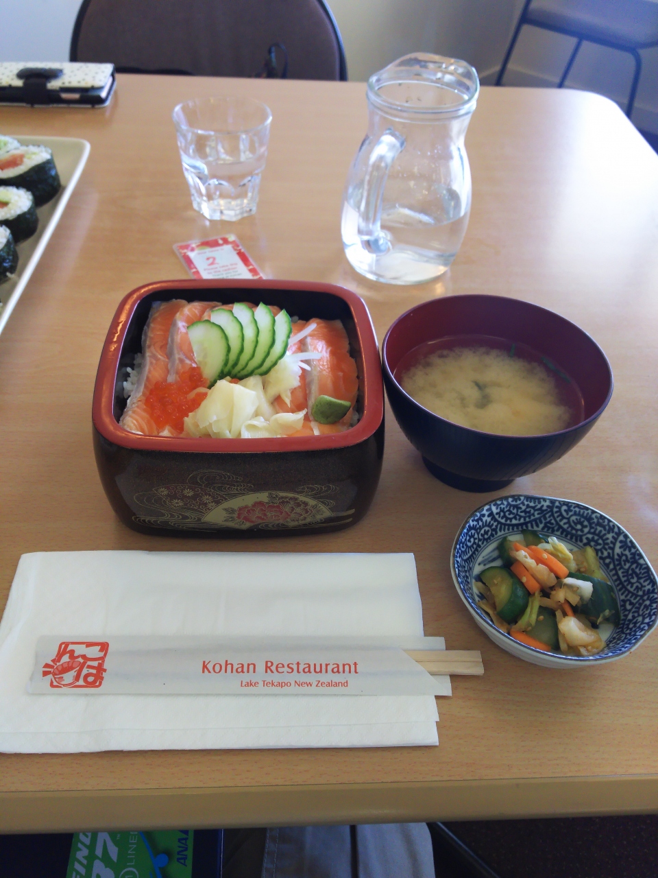 サーモン丼とアボガド巻きを食べてあわせて32NZDでした。