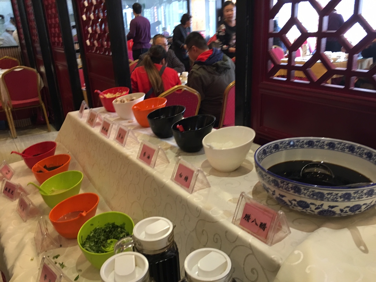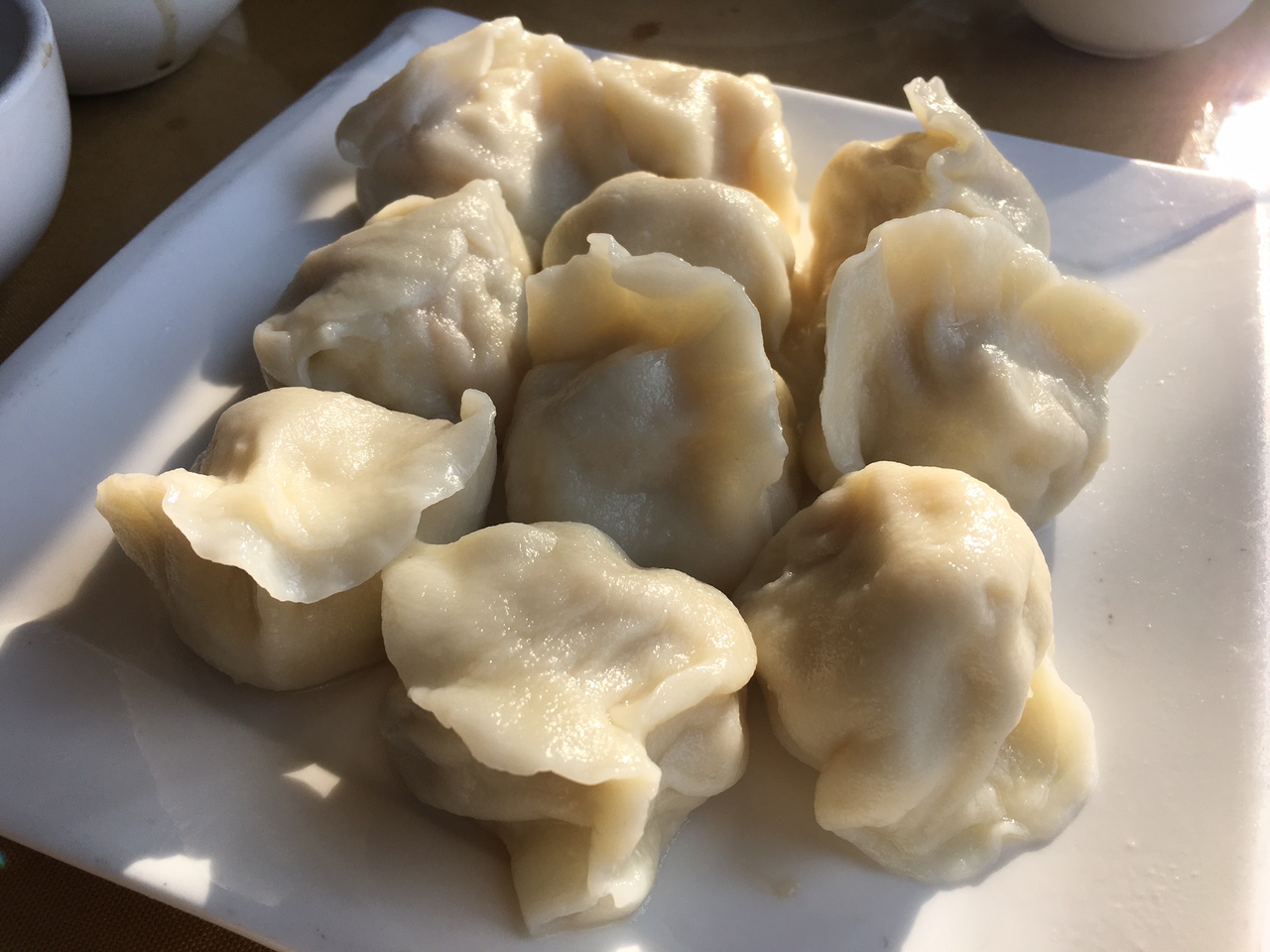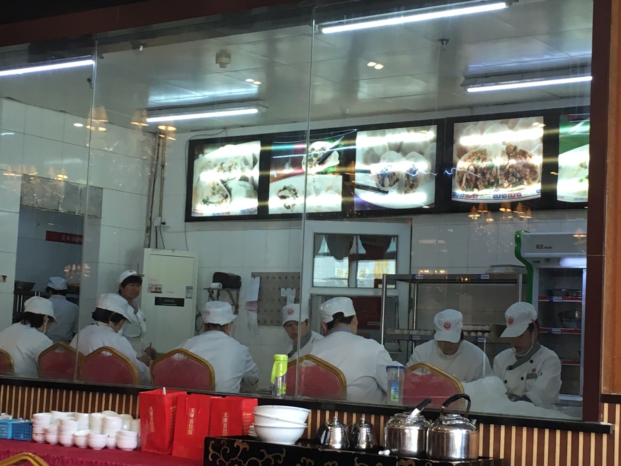天津に数店舗、北京にも支店のある餃子の有名店。ガイドブックには229とされる餃子の種類はギネスブックにも登録されているとのこと。ブッシュ前大統領の奥様も北京の支店を訪問されたとのこと。食器は一組ずつ包装されていて衛生的。餃子は1両5個で2両からオーダー可能。1両5.8元~20元くらい。餃子を茹でたお湯をヤカンで配ってくれます。タレは数種類の薬味などから自分で調合します。餃子は注文を受けてから作るので少し時間がかかりますが、その分、ちゃんとしたものです。餃子はもちもち感がありどれも美味。トマト餃子はトマトがしっかりしており、これまで食べたことのない感覚。海老豆腐の餃子は、ぷりぷりの海老のすり身で美味。お店で一番オススメとされている「精品猪肉三餃」は、様々な食感が楽しめる一品。蟹黄餃子は、蟹の味がしっかりしていて美味。「鮮蟹」は蟹味噌入りの餃子。軽く食べられるので、結構食べられる印象。食べきれなければ、持ち帰りもオーケーです。
