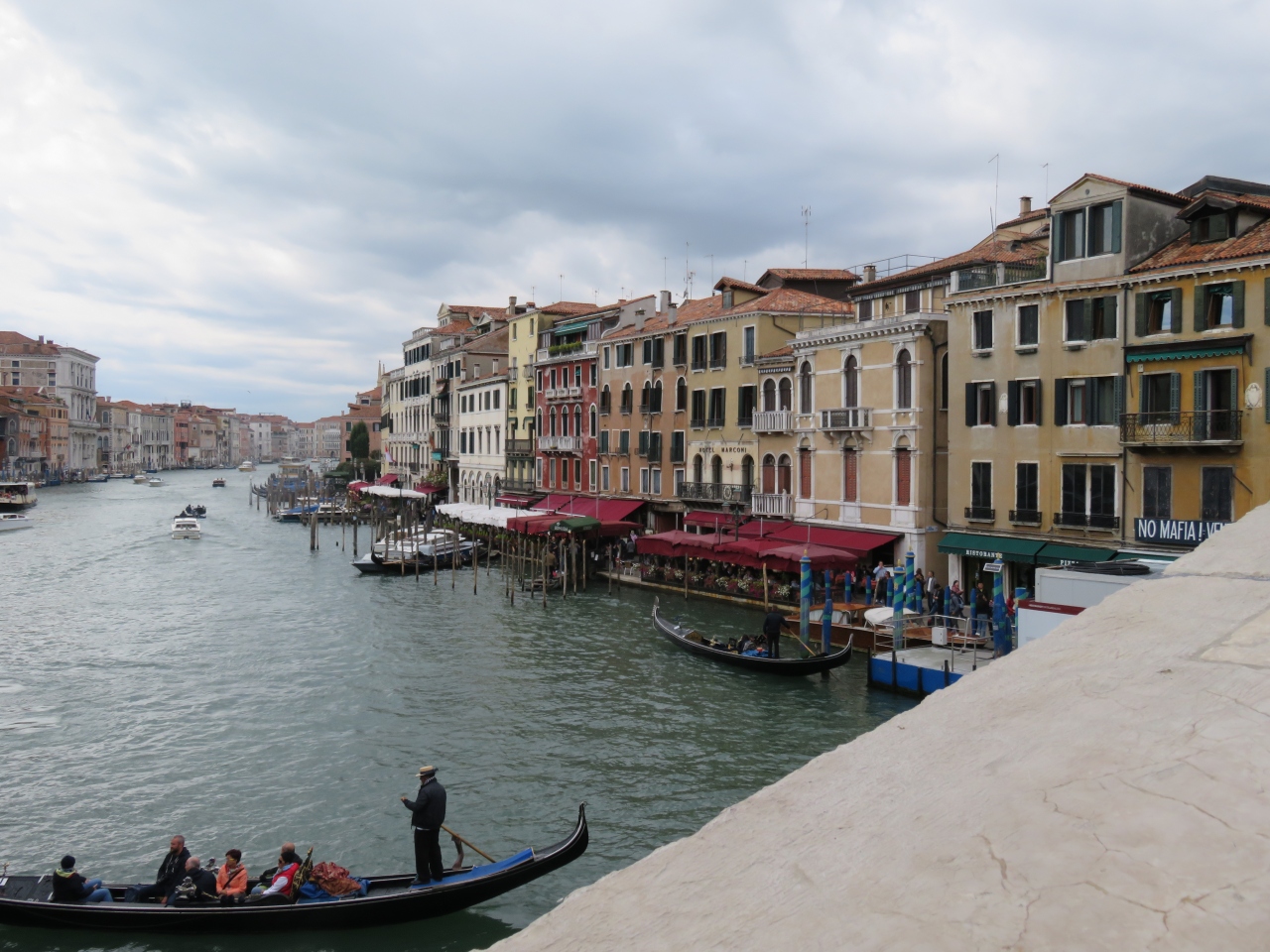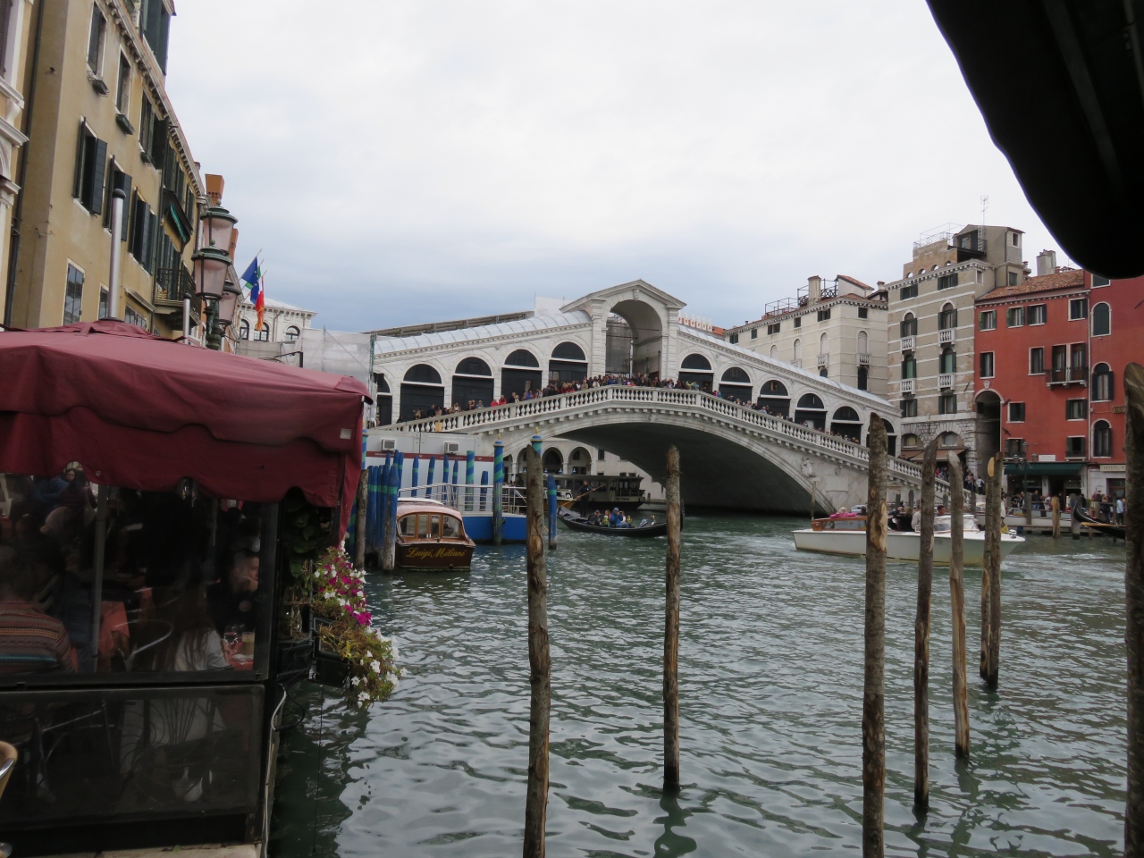 サンマルコ広場から人の流れに乗り、ほとんど迷いもなくリアルト橋に着きました。途中何本かの橋を渡ってきたがこのような大きな橋はなかった。さすがヴェネチア一番の橋のため、ここも大渋滞です。