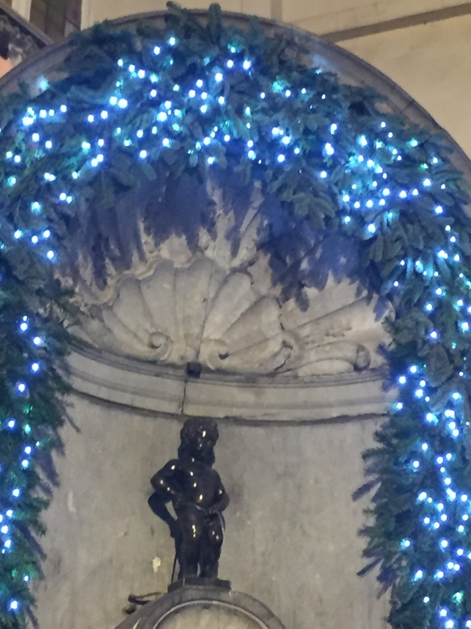 グランプラスから路地を歩いて数分のところにあります。各地にある小便小僧の元祖になります。小さい銅像ですが、観光客がいるので、すぐわかります。私が行った時は、小便小僧の銅像の周りをライトアップしていました。