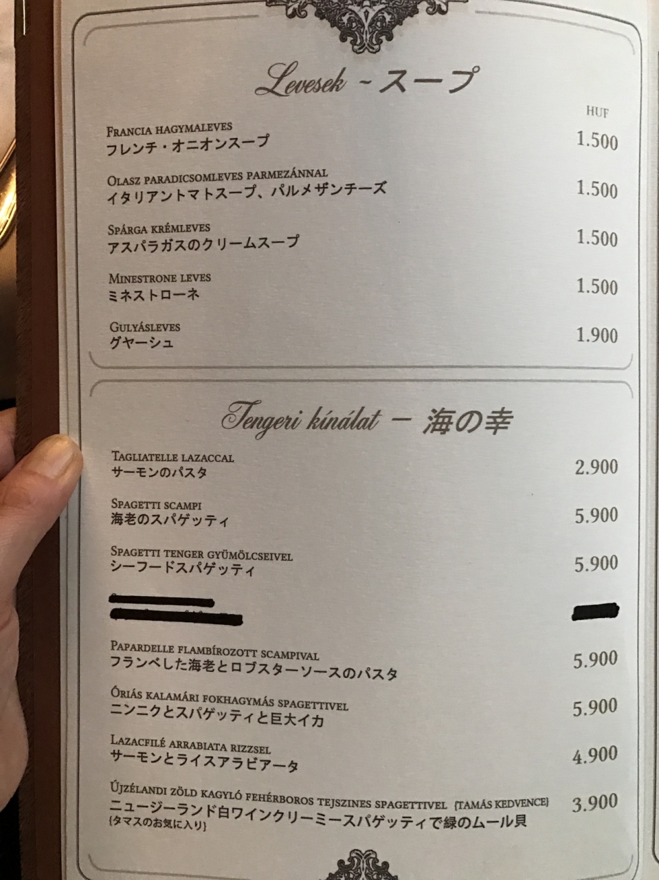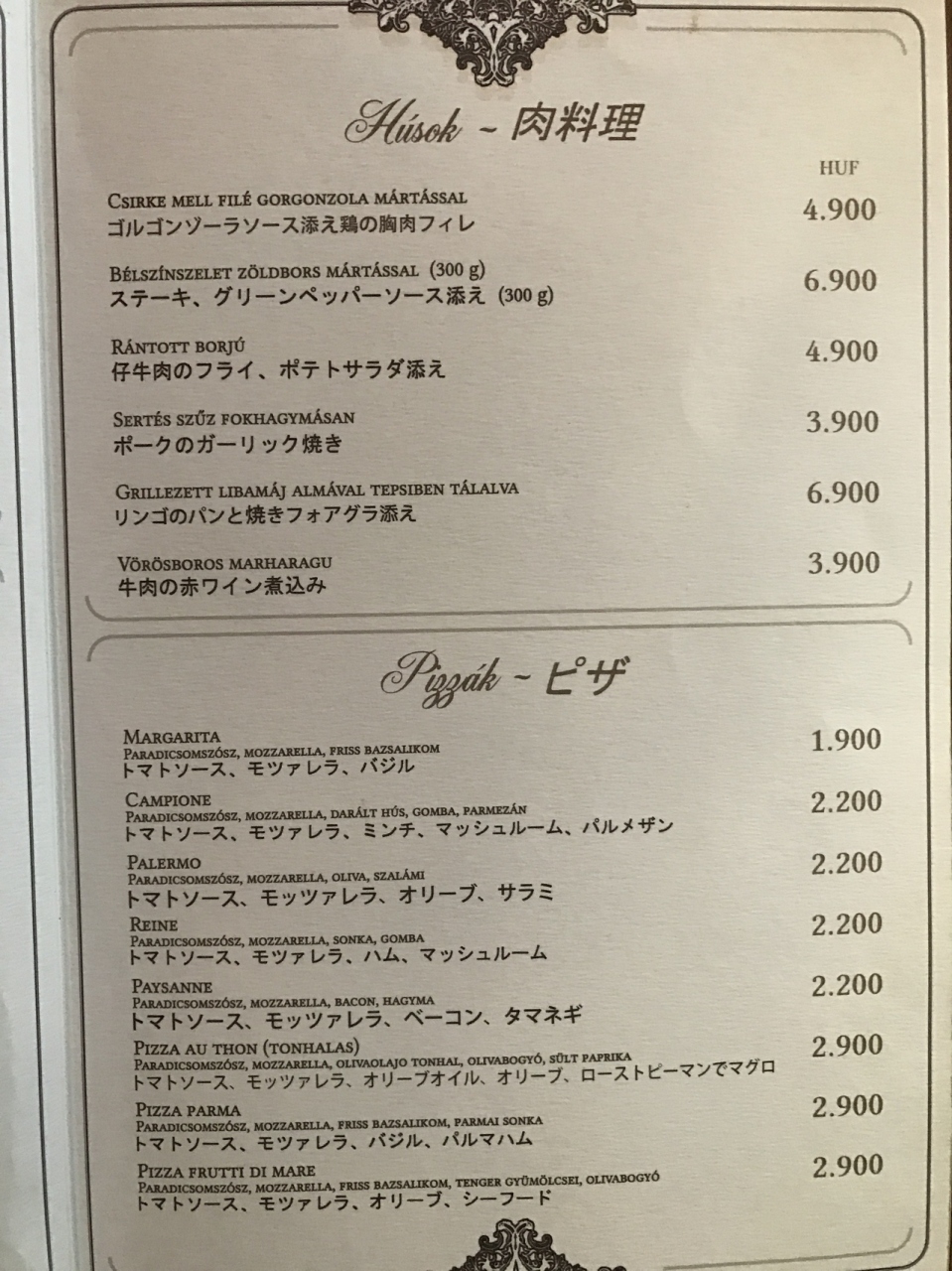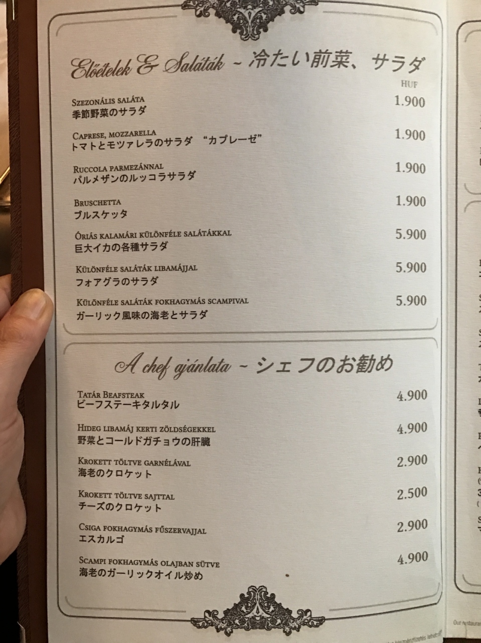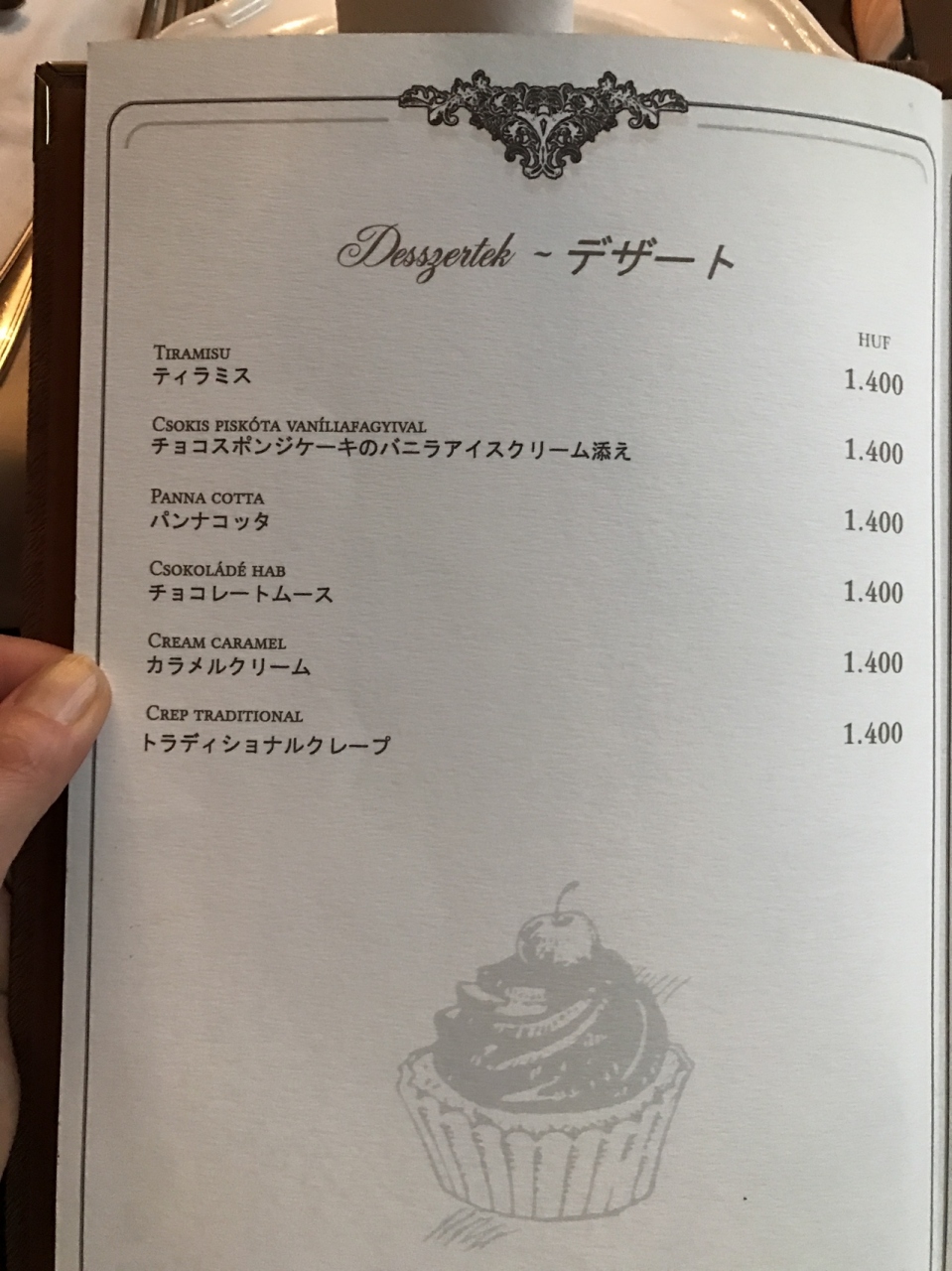 サービス品の前菜やオーダーしたお料理、最後にダブルサービスのジェラートとトカイワイン。これも、サービス?と不思議に思うほどでした。