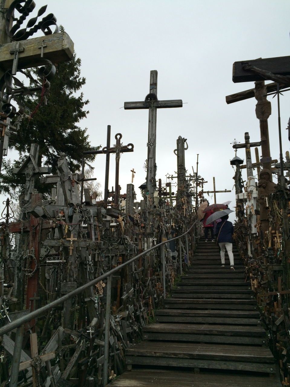 駐車場を降りて少し歩きますが、そこからでも十字架が丘になっているのがわかります。実際、沢山の十字架の中を階段を上って上の方に行くことが出来ます。