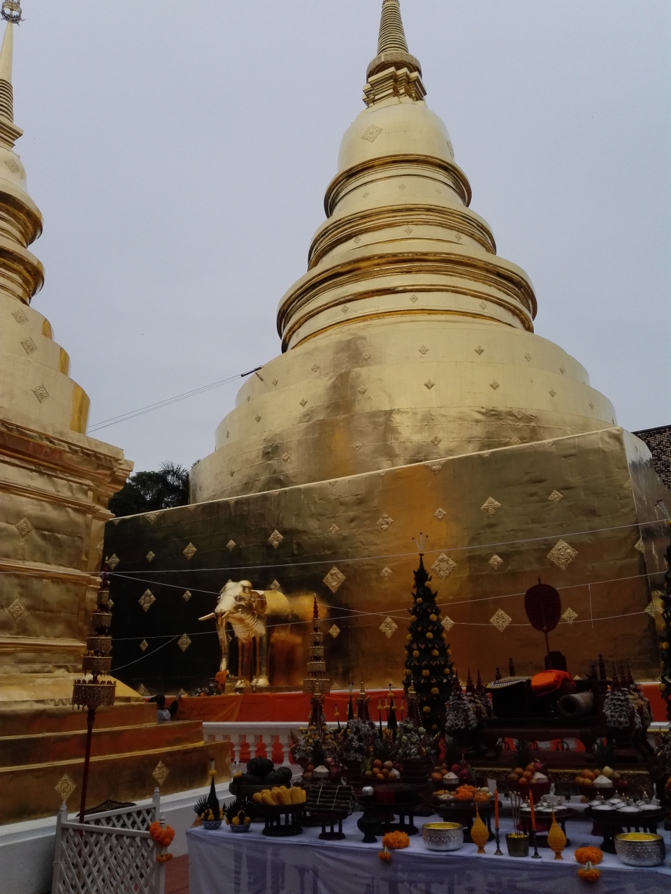 チェンマイ旧市内にあるワット・プラ・シンは黄金で彩られた仏塔が見事な寺院でした。スリランカから持ち込まれたプラシン像収められており礼拝堂の壁画も見事であった。黄金の寺院はチェンマイで最も格式の高い寺院である。