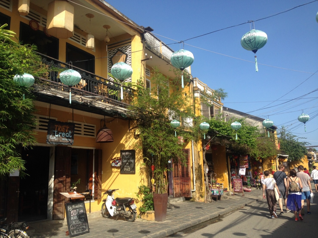 ホイアン旧市街のメインストリートです。シクロや沢山の観光客でとても歩き辛かったです。お土産やカフェ、服屋など様々なお店が並んでいます。とても暑い日だったのでカフェで休憩しながら人の行き来を観察しました。雰囲気が素敵です。