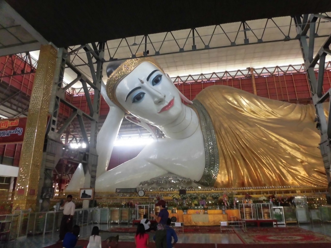 正面に立つと、寝仏の目線を感じてしまいます。なかなか魅力的な目をしています。