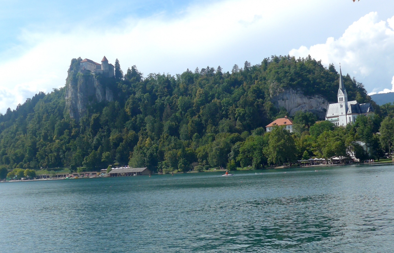 ブレッド湖はスロベニア隋一の名所 シーズンは込みあうが,手前の大駐車場よりも湖畔の駐車スペースの方が便利だし空いていることも多い.朝ホテルに宿泊した人もここを利用していることが多いからだが 一日10ユーロ ごごから6ユーロだが,島や教会 ブレッド城は西側にあるので,朝がいいと思う 私は二度とも午後だったので逆光だった