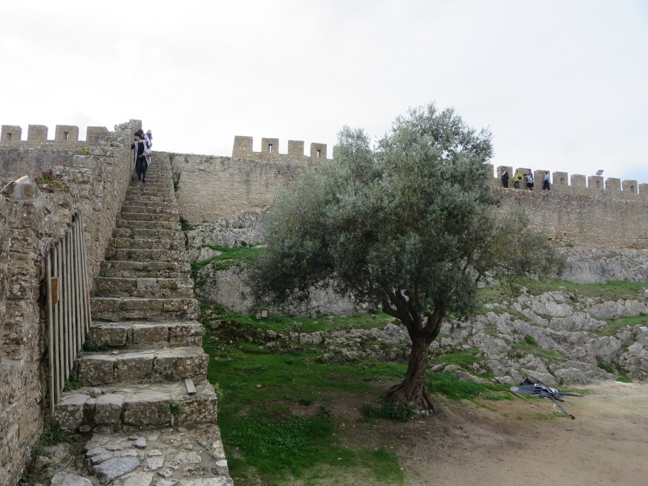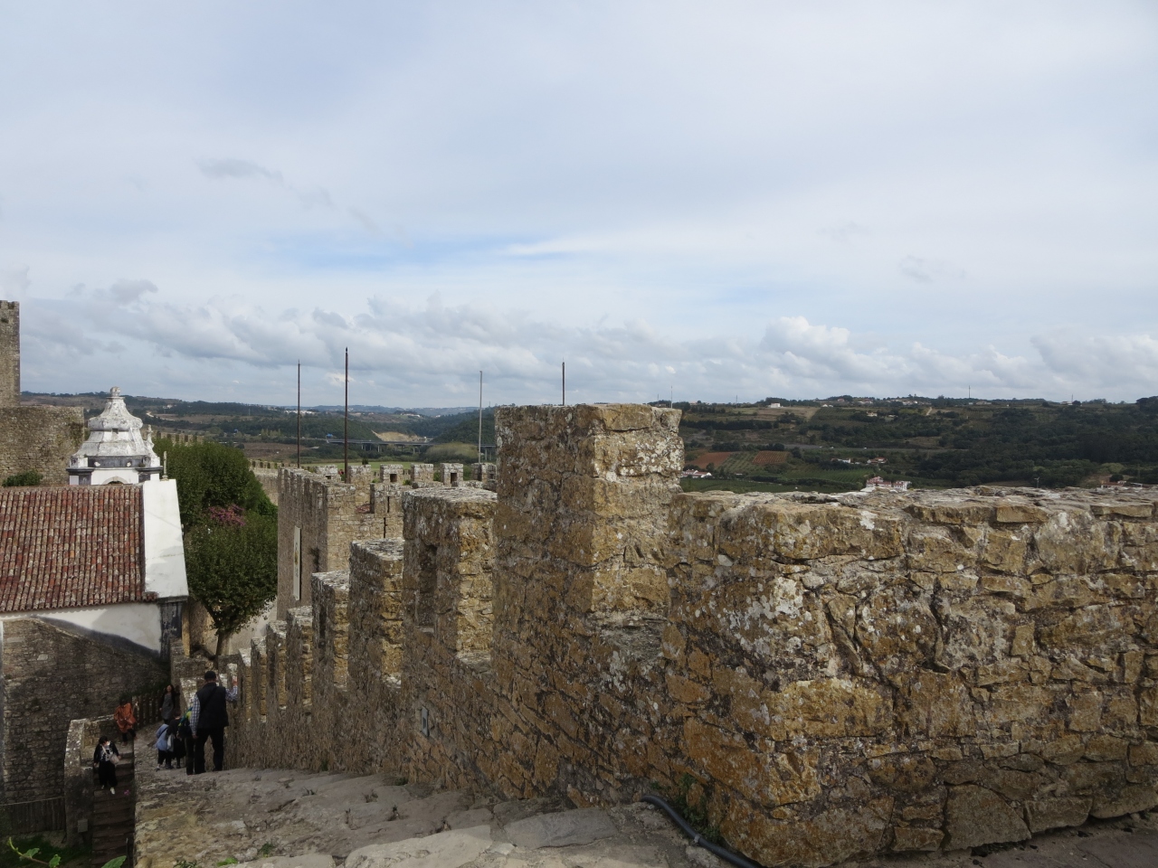 城壁の上を歩けますが、柵が無く、すれ違うのが怖いくらいの、細い通路になっています。