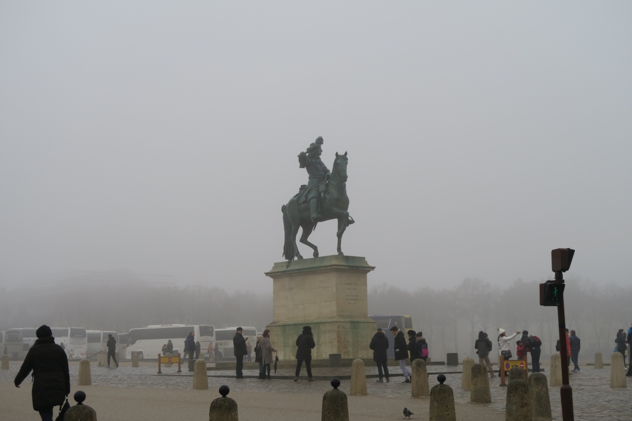 ここはベルサイユ宮殿観光の起点となる広場で、騎馬に載ったルイ14世の銅像がある。