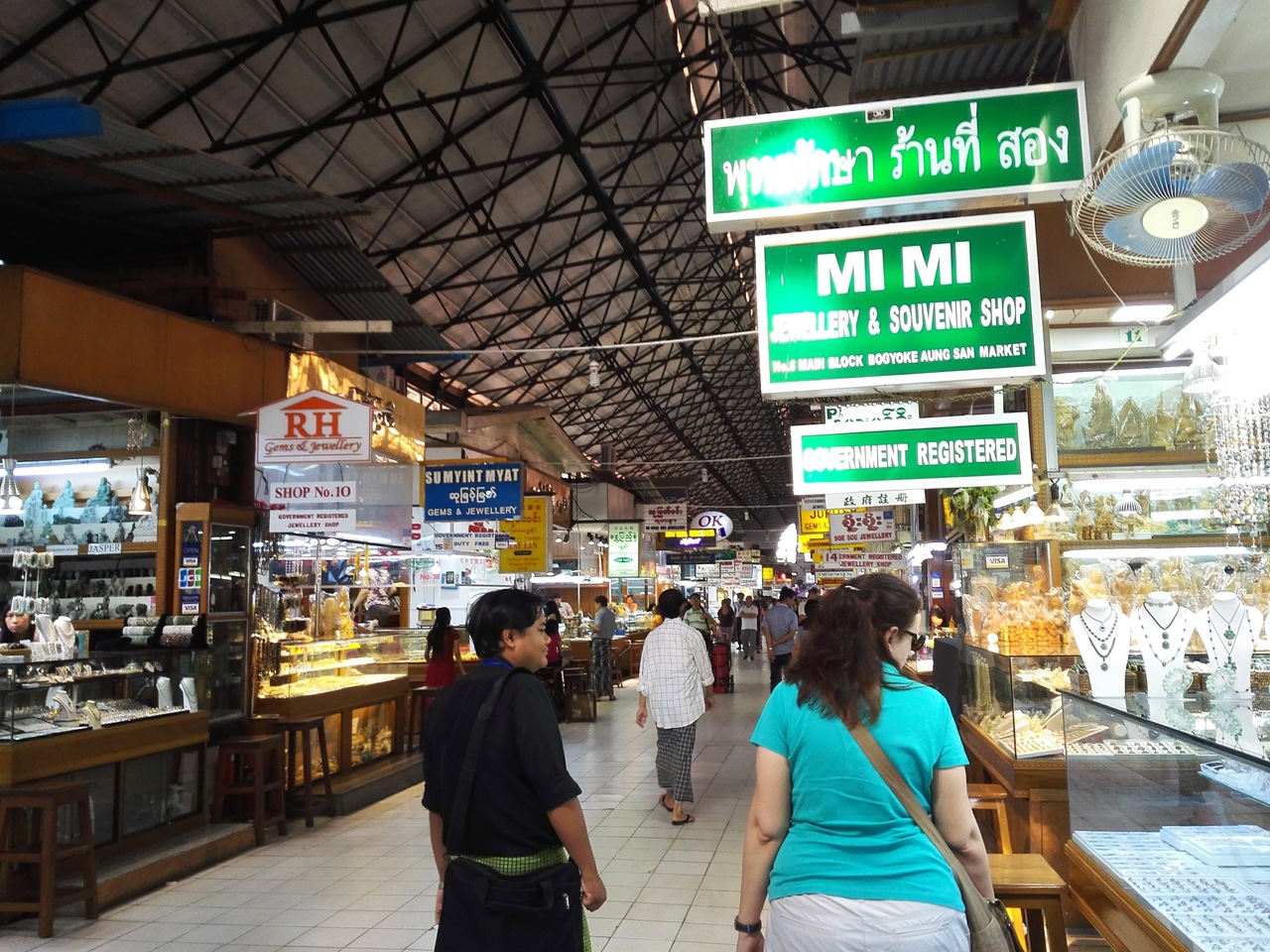 マーケットの中は、民芸品・雑貨・衣類・ヒスイなどの宝石類・絵画なでミャンマーらしい土産を売る店がいっぱいあります。