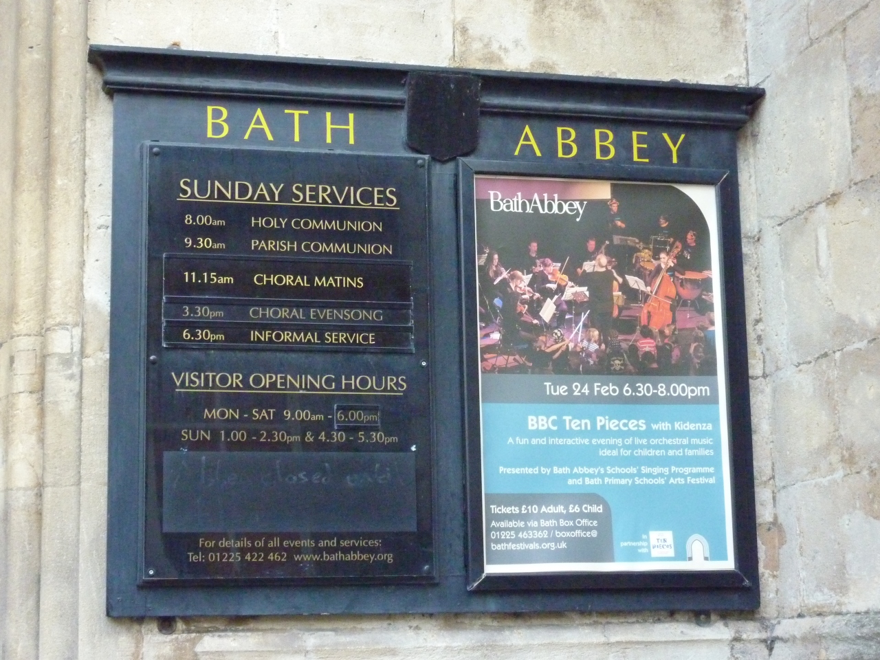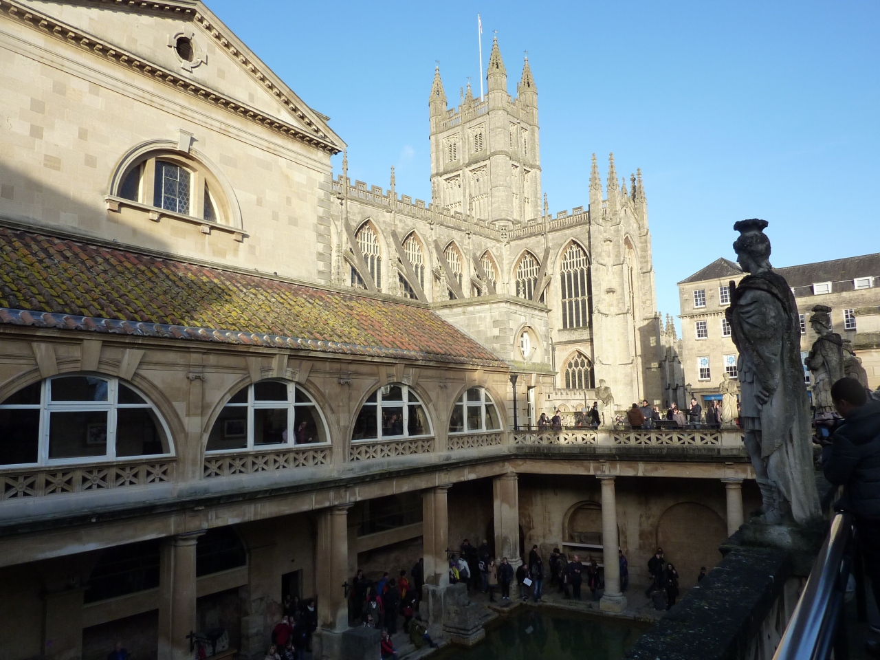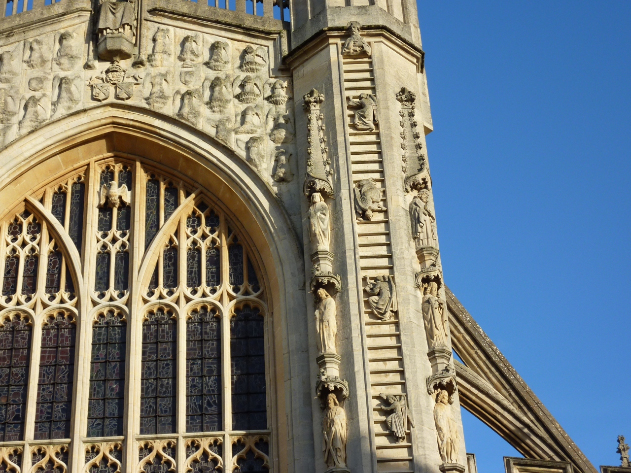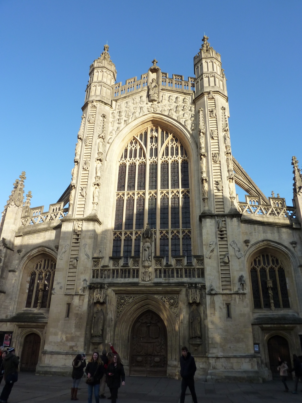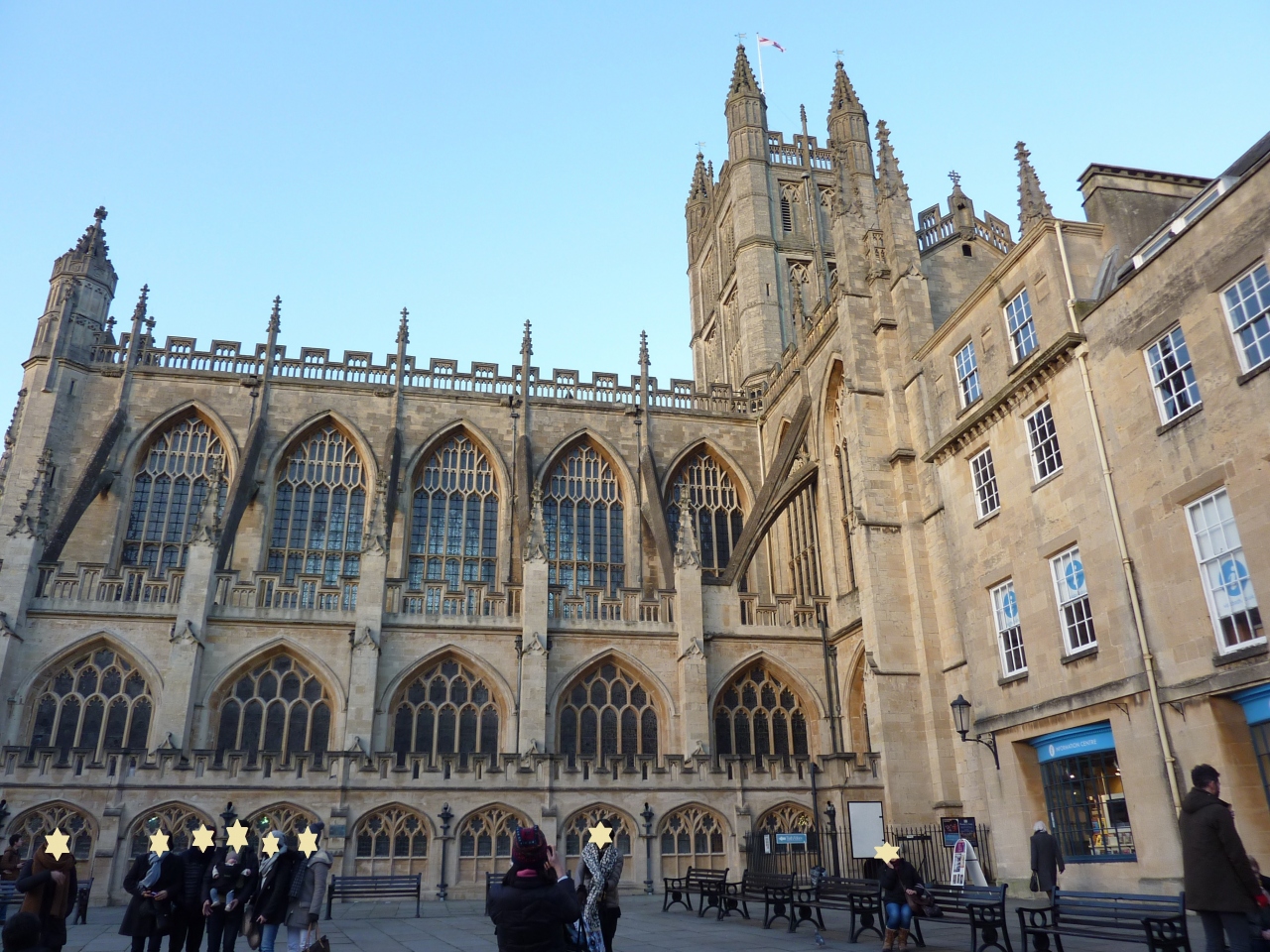 バースの観光の中心地で、ローマンバスの隣にあります。見事なファサードで、尖塔には梯子を登っていく天使の姿がレリーフになっていて、蜂蜜色の石の色がこの地方の特色を現しています。