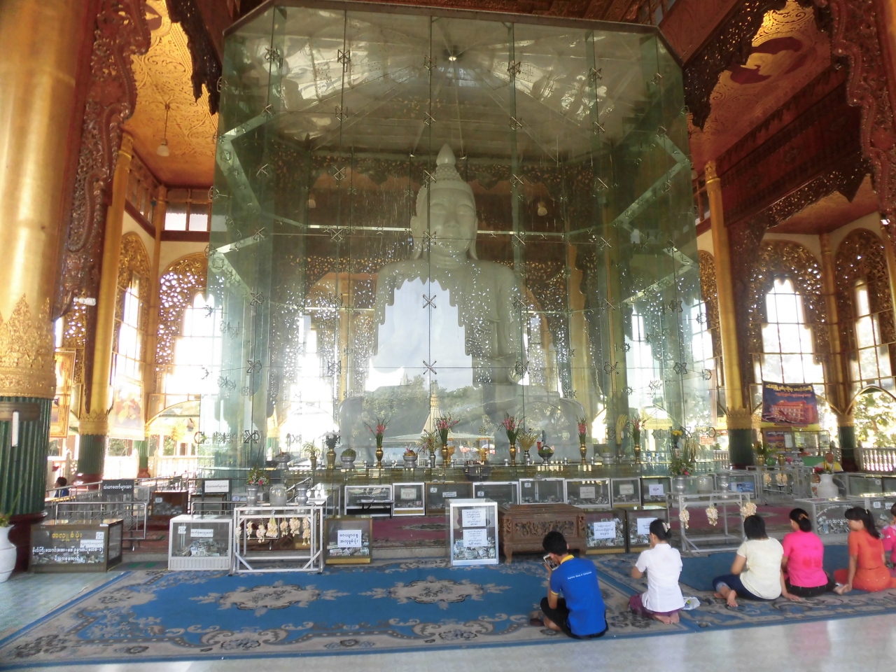 高さ約10m、重さ600トン以上の仏像で、巨大な大理石の一枚岩から彫り出されたものです。マンダレー近くから船で運んできたとのこと、最近の大仏はどうみてもコンクリート製が多いので、珍しい仏像です。