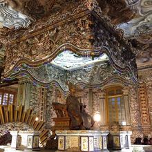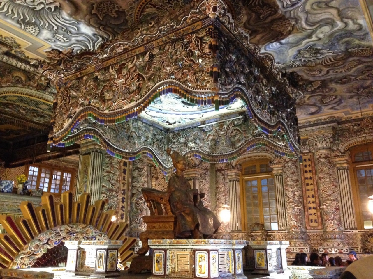 カイディアン帝の遺体が安置されている部屋は豪華絢爛という言葉しか思い浮かばない程の装飾でした。フランスや中国の影響を受けているので少し統一感に欠けるかなと思いましたが、フエ王朝のツアーで一番印象に残っている場所です。