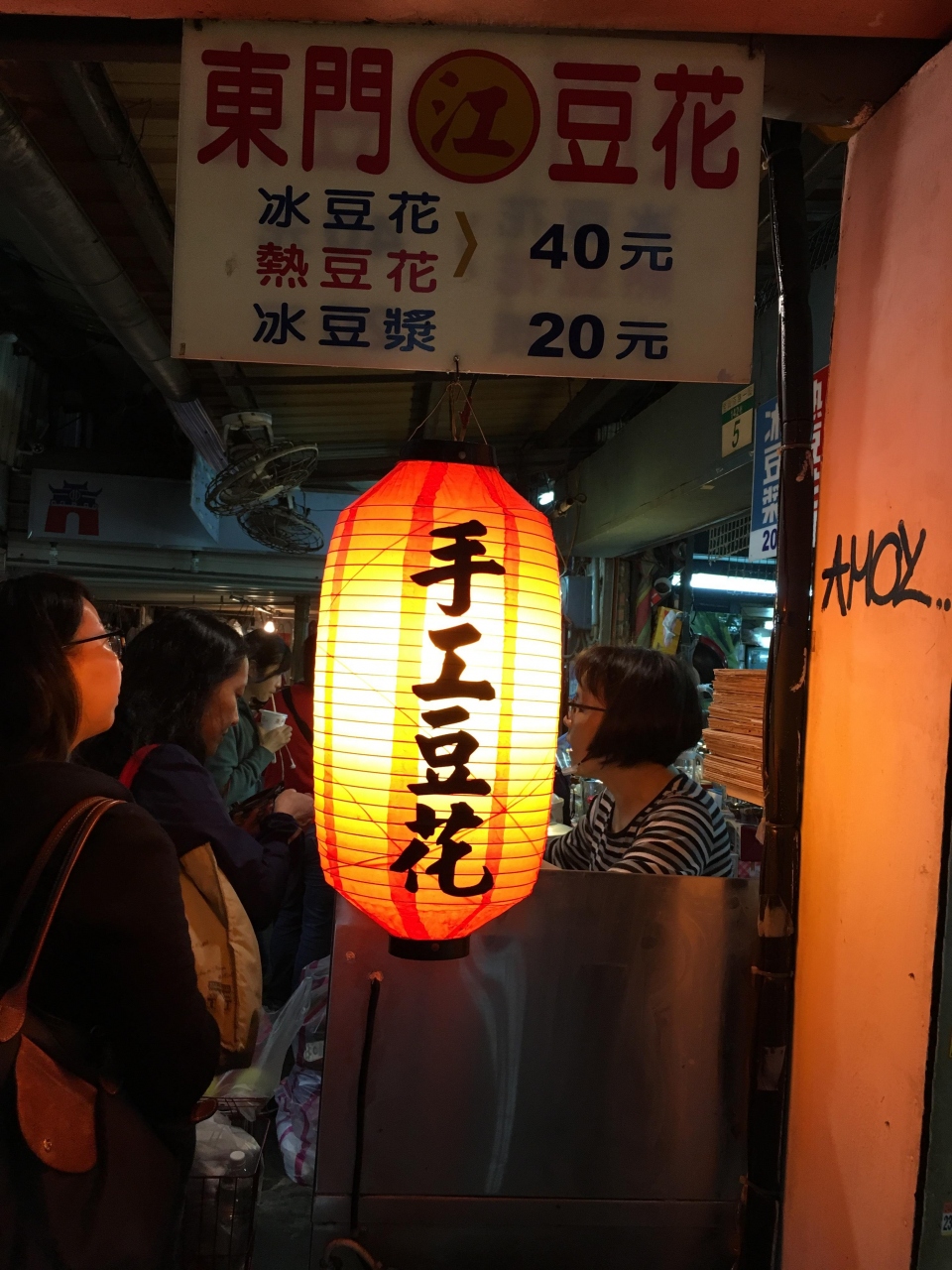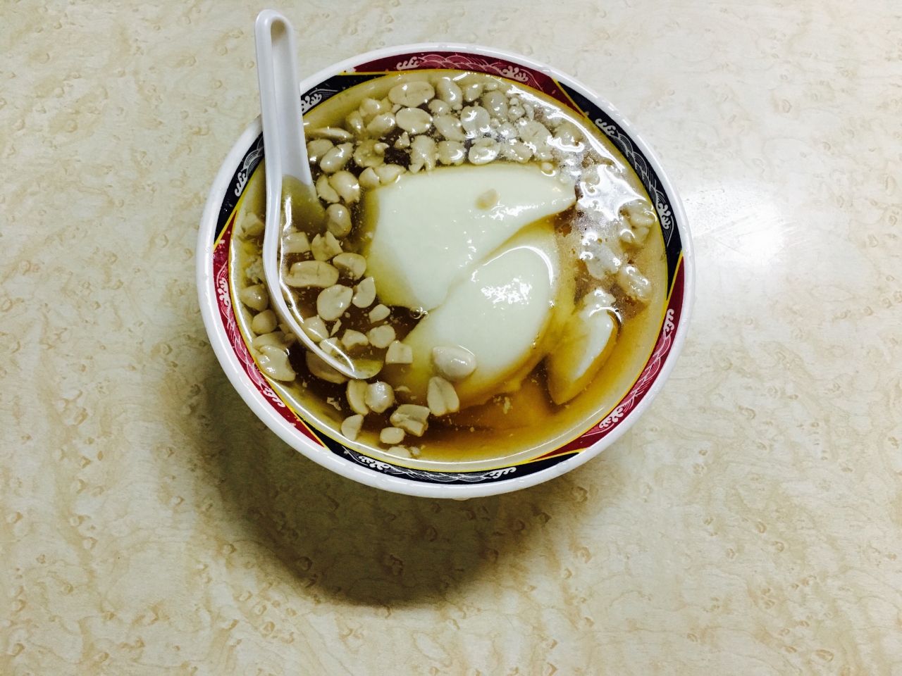 東門市場の中にありますが、中心の方ではなく、小さな筋を入ったところにあります。私達は中々見つけることができず、一旦外に出て外から探し直しました。目立つ看板も出ていない為、近くまで行かないと分かりずらいかもしれません。小さなお店でメニューは冰豆花、温豆花、冰豆漿の3種類のみ。トッピングメニューはなく、豆花には最初から茹でたピーナッツが入っており、しょうが汁(加薑)が5~10元で追加できます。私達は冰豆花を頂きましたが、とても美味しかった!豆花とシロップが絶妙な優しい味わいでピーナッツもほくほく。心と体に優しいスイーツですね。時間があれば、ぜひ温豆花も食べたかったですが、次回のお楽しみに取っておきます^^