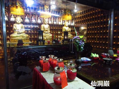 基隆にある天然の海蝕洞窟寺院です。壁にはこれまでここを訪れた人々の残した書や信者が寄付して彫ったとみられる仏像があります。人がひとり通れば精いっぱいといった感じの岩と岩が狭まった洞窟を歩いていくと、奥に三寶佛、観音菩薩が祀られています。とても神秘的な雰囲気の寺院です。