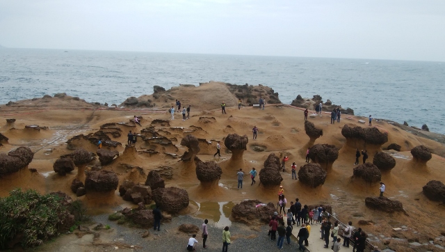 台北駅からバスで90分ぐらい。台北市内がとくに混んでいました。バス乗り場がちょっと移動したようでわかりにくかった。親切な地元のかたがバス停まで連れていってくれなかったら、バス停までいけなかったと思う。またバス降りてからもなんとなくほかの人につられてまっすぐすすんだら、みんな間違っていて、バスの運転手がぷぷっとクラクションで後ろに進むように示してくれた。バス降りてからも10分ぐらいあるきます。自分でいけますが、目の前で降りるわけでもないので、留意がいります。奇岩で女王の頭が一番有名で、入場券をかってなかにはいっていくと、この女王の頭と一緒に写真をとる列があります。あたりまえですが屋外なので、風が強く、天候が悪い日はおすすめできません。
