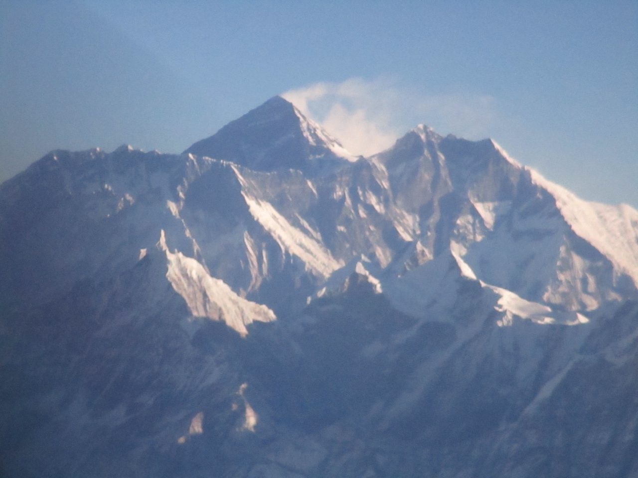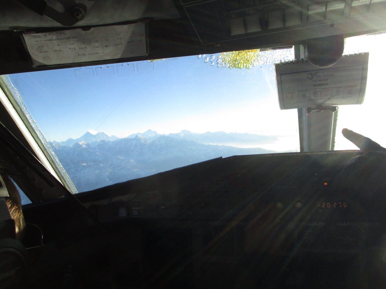 地上6000mの上空から望むヒマラヤ山脈は雄大で、エベレストもハッキリと見えました。