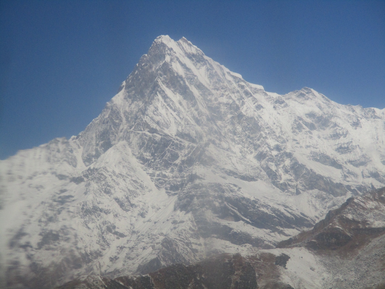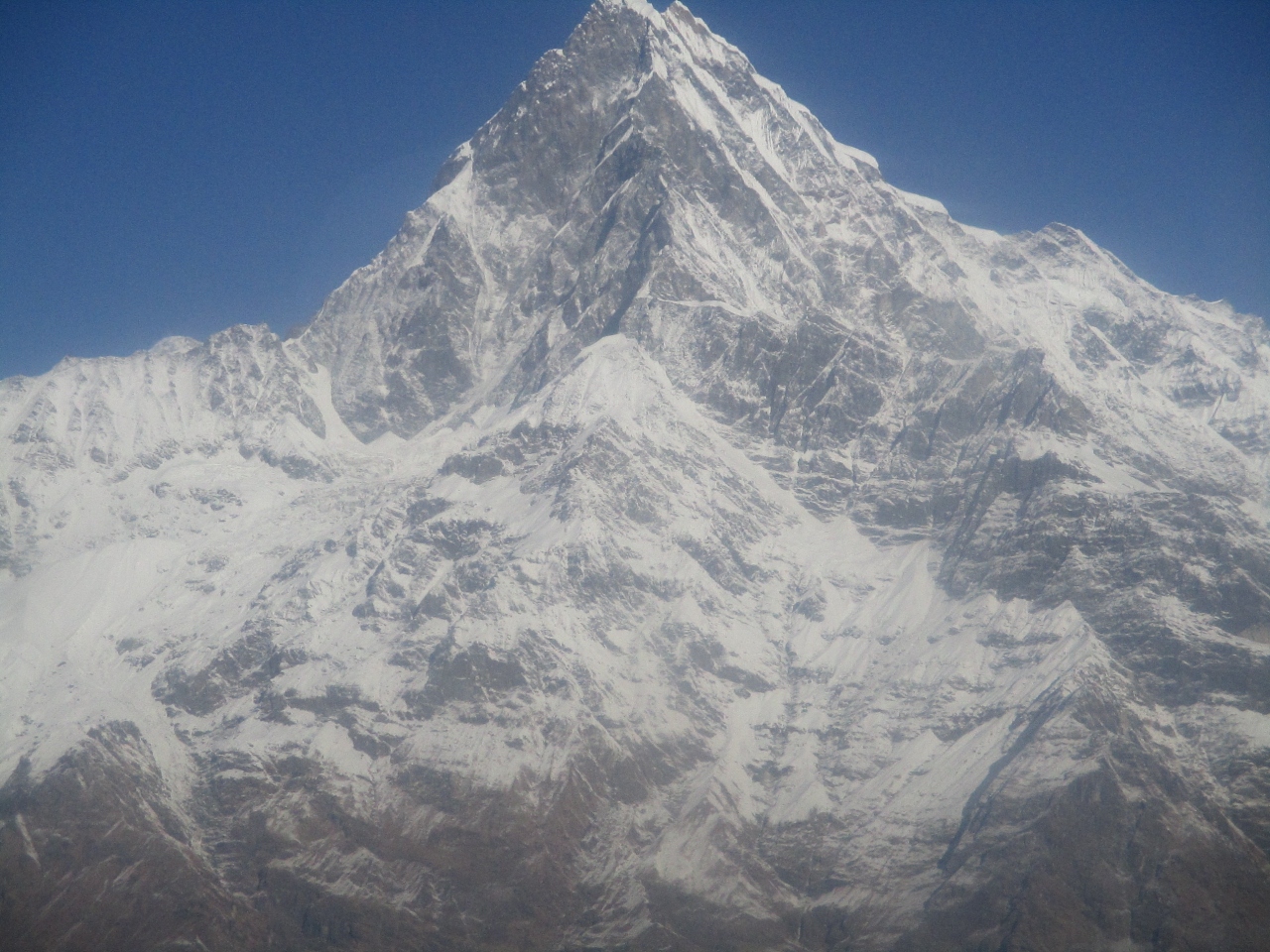 ポカラの空港から早朝飛び立ち、標高8091mのアンナプルナを始めとしたアンナプルナ山群、特にマッターホルンによく似たマチャプチャレのすぐそばまで飛びました。