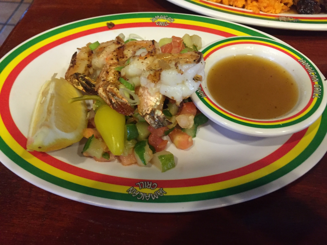 注文は、ジャマイカン・バーベキューとチキンリブ(これがいけなかった)、運ばれてきて私がまずチキンリブを食べる。