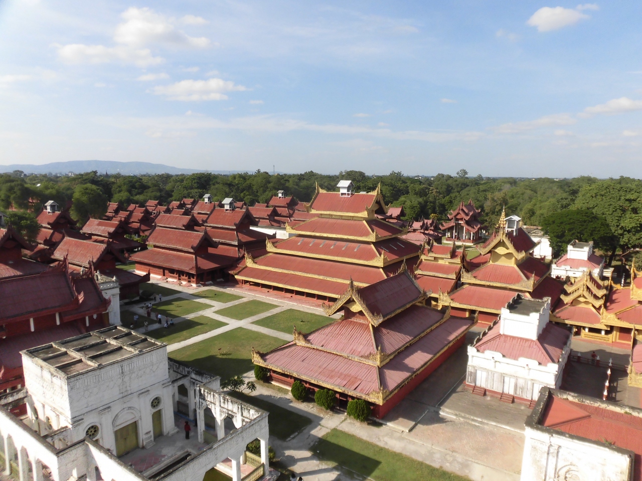 建物は木造で平屋建てが多く、夏には45度にもなるマンダレーらしく、風通りの良い造りになっています。王宮の周りを自転車で一周廻ってみましたが、さほど大きくはなかったです。