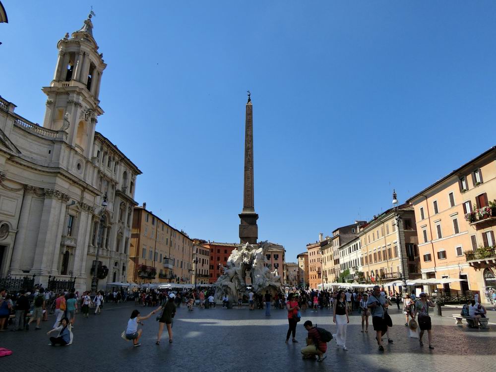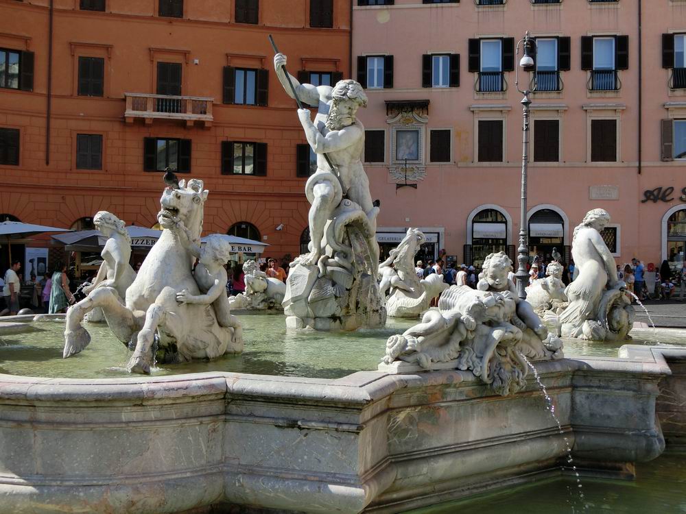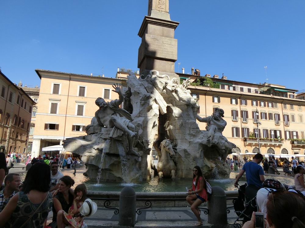 競技場だった所に造られた広場ということで、南北に長い形なのが納得です。北・中央・南と3か所に噴水があり、特に中央にあるベルルーニ作の四大河の噴水が有名。この噴水は躍動感のある彫像が見事なので必見です。広場に面したサンタニェーゼ イン アゴーネ教会も聖アニェーゼ像やクーポラ部分の天井画など見ごたえありなのでおすすめです。