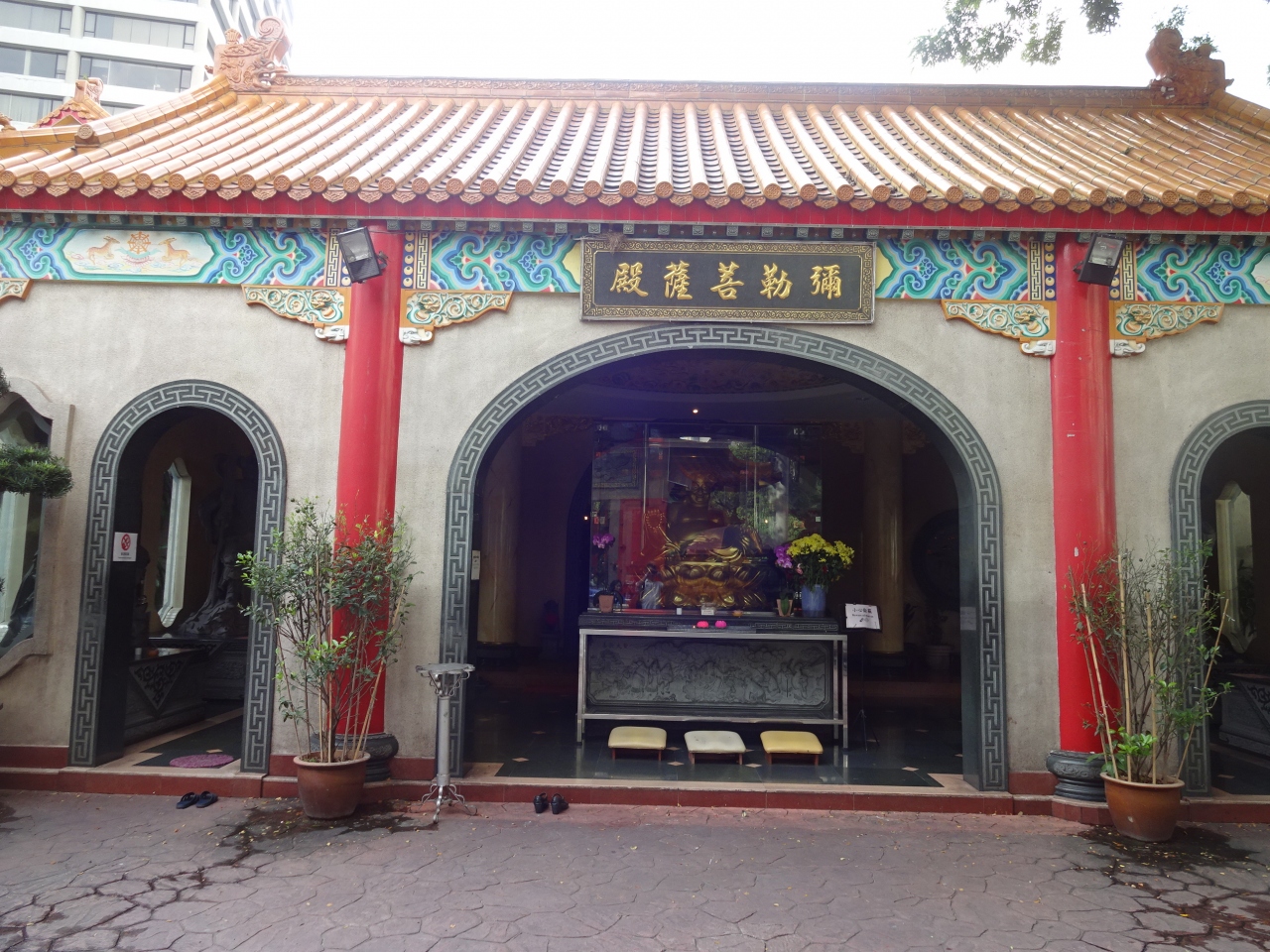 さほど大きい寺院ではないですが、中にはいると金ぴかの仏像が3体