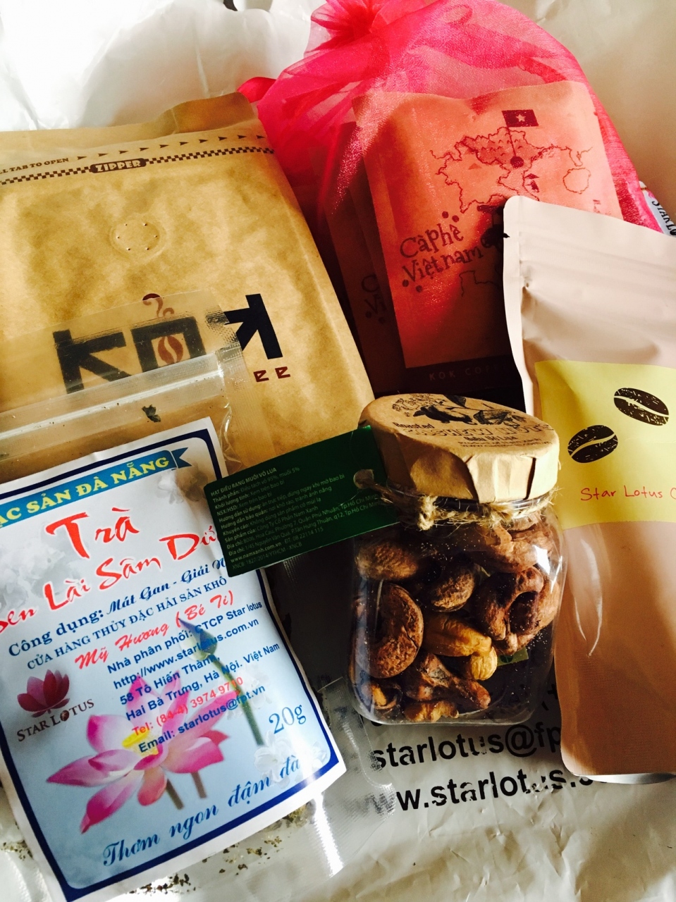 私は試飲で出してもらった蓮やジャスミンなどのブレンド茶、カシューナッツ、スターロータスオリジナルブレンドコーヒーや、お土産用に可愛い袋に入れられたドリップコーヒーを購入しました。
